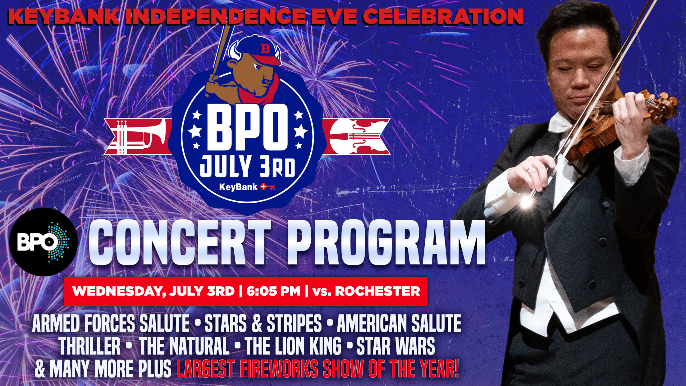 GET MY KEYBANK INDEPENDENCE EVE TICKETS On Wednesday, July 3, the best Western New York summer tradition returns to Sahlen Field with 28th installment of the KeyBank Independence Eve Celebration. Today, the Bisons announced Buffalo Philharmonic Orchestra’s program for the postgame Concert following the Herd’s game that night against the