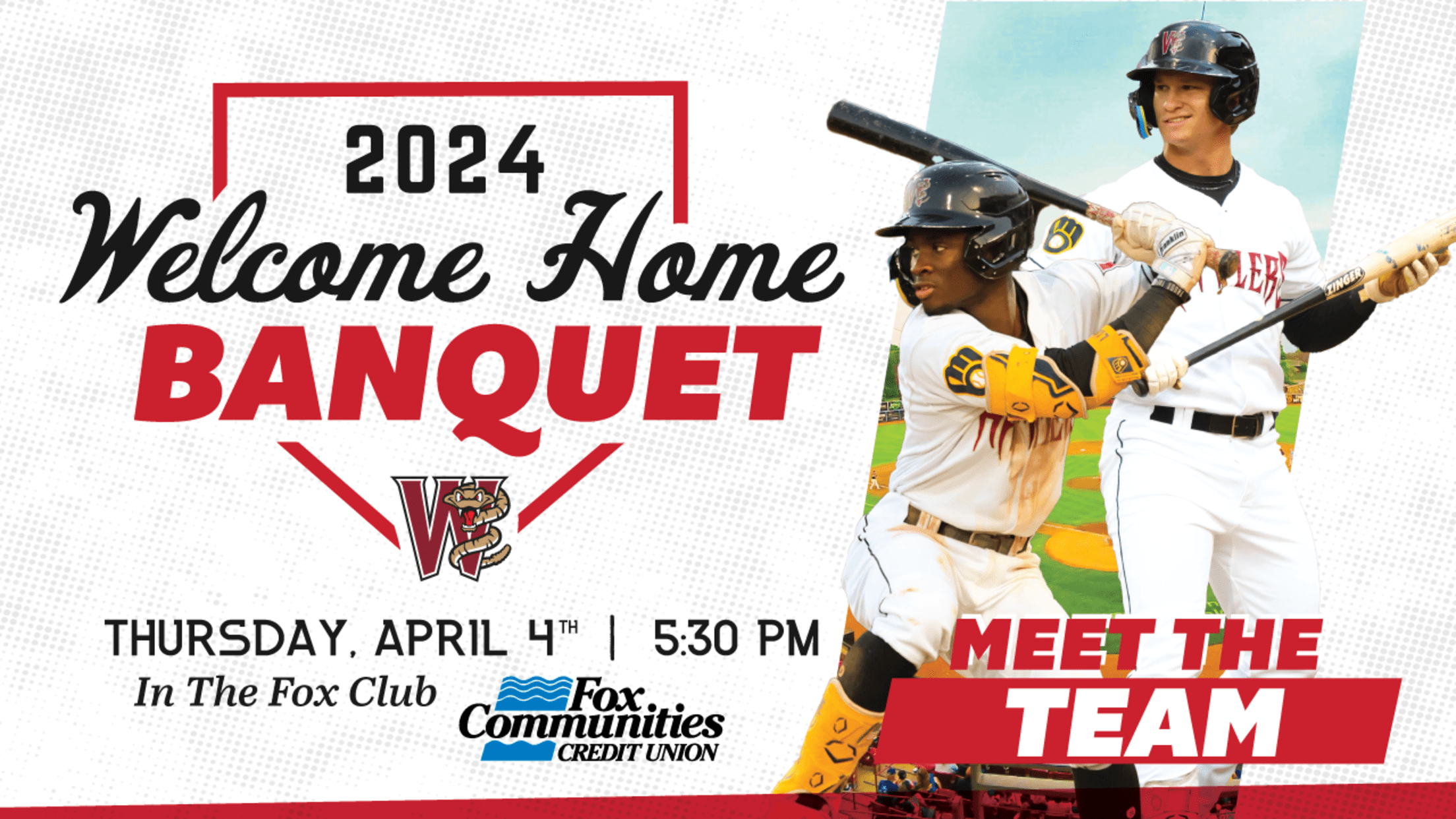 GRAND CHUTE, WI – The 2024 Fox Communities Credit Union Welcome Home Banquet is scheduled for Thursday, April 4 to officially welcome Wisconsin Timber Rattlers players and fans to the start of the season. Tickets for the event are available now at this link.