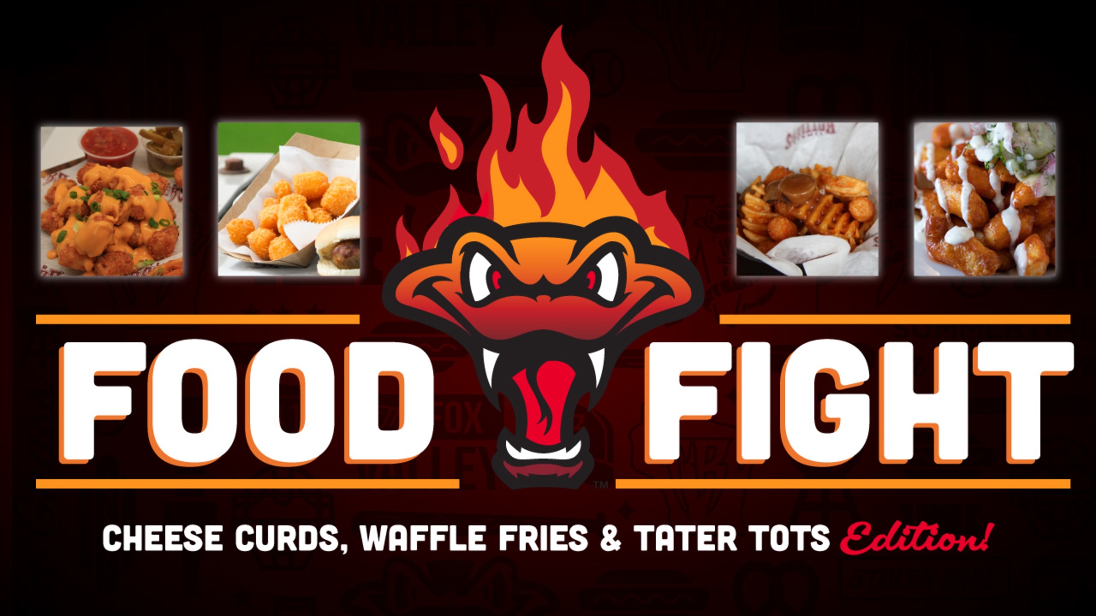 GRAND CHUTE, WI – Food Fight Number Nine starts today! The Wisconsin Timber Rattlers are providing a starting point of waffle fries, tater tots, or cheese curds. Where you go from there is up to you! Submit your appetizer recipe that uses one of the bases and provide the toppings to enter the 2024 Food Fight arena. If your entry outlasts the competition, everyone will be able to order it at concession stands inside Neuroscience Group Field at Fox Cities Stadium this season.
