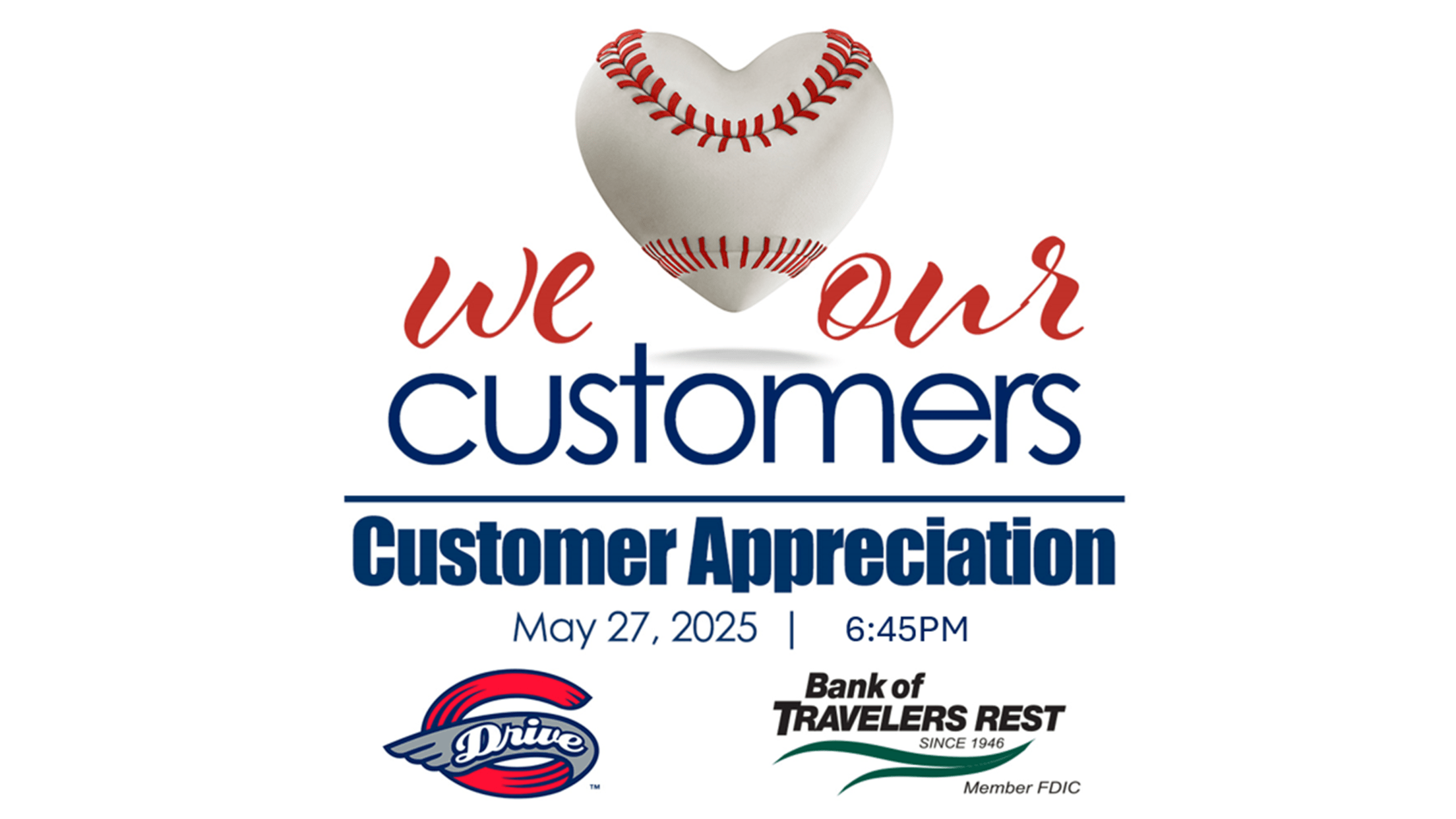 From the first pitch to the final out, fans will be treated to an exciting night of action on the field and festivities in the stands. Be sure to swing by the Bank of Travelers Rest booth on the concourse, where you’ll find friendly faces, free giveaways, and some great surprises throughout the night. It’s the perfect chance to connect with a hometown partner that’s been serving our community for over 75 years.