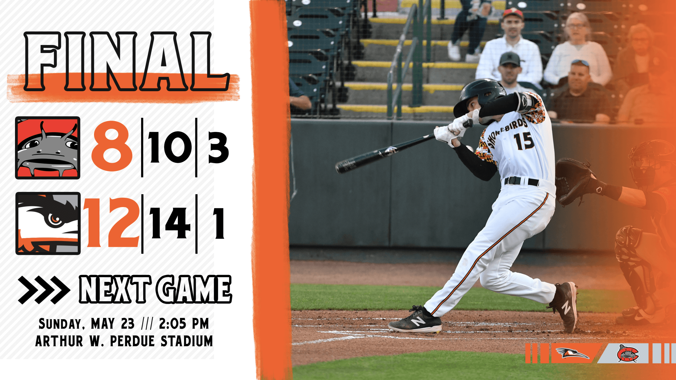 SALISBURY, MD - In another high scoring affair, the Delmarva Shorebirds emerged victorious over the Carolina Mudcats, 12-8, on Saturday night at Arthur W. Perdue Stadium.