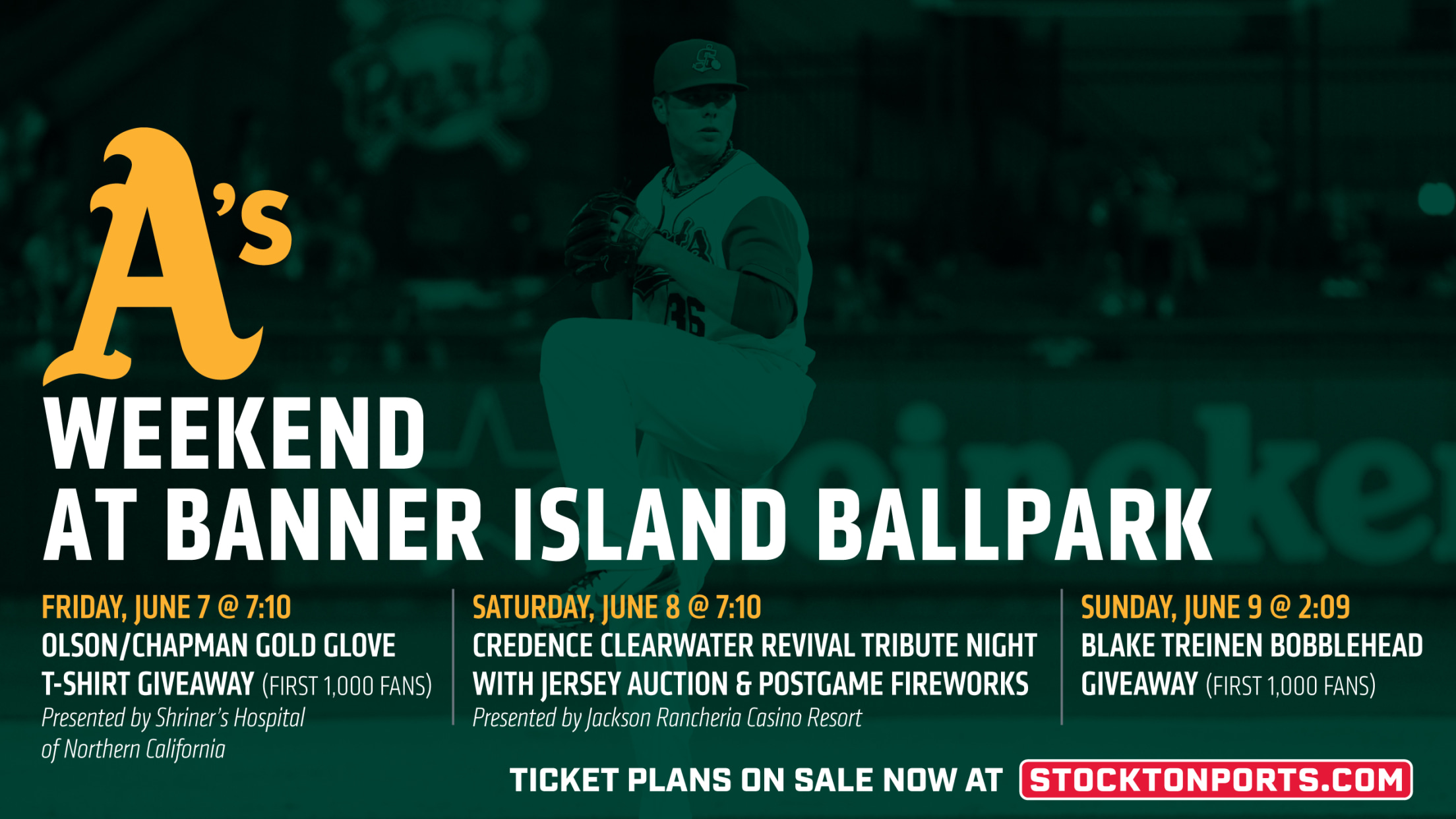 The Stockton Ports released the first portion of their promotions schedule Friday, announcing "A's Weekend" will take place at Banner Island Ballpark from June 7-9, when the Ports host the San Jose Giants for a three-game series.On Friday, June 7, the Ports will give out gold t-shirts to the first