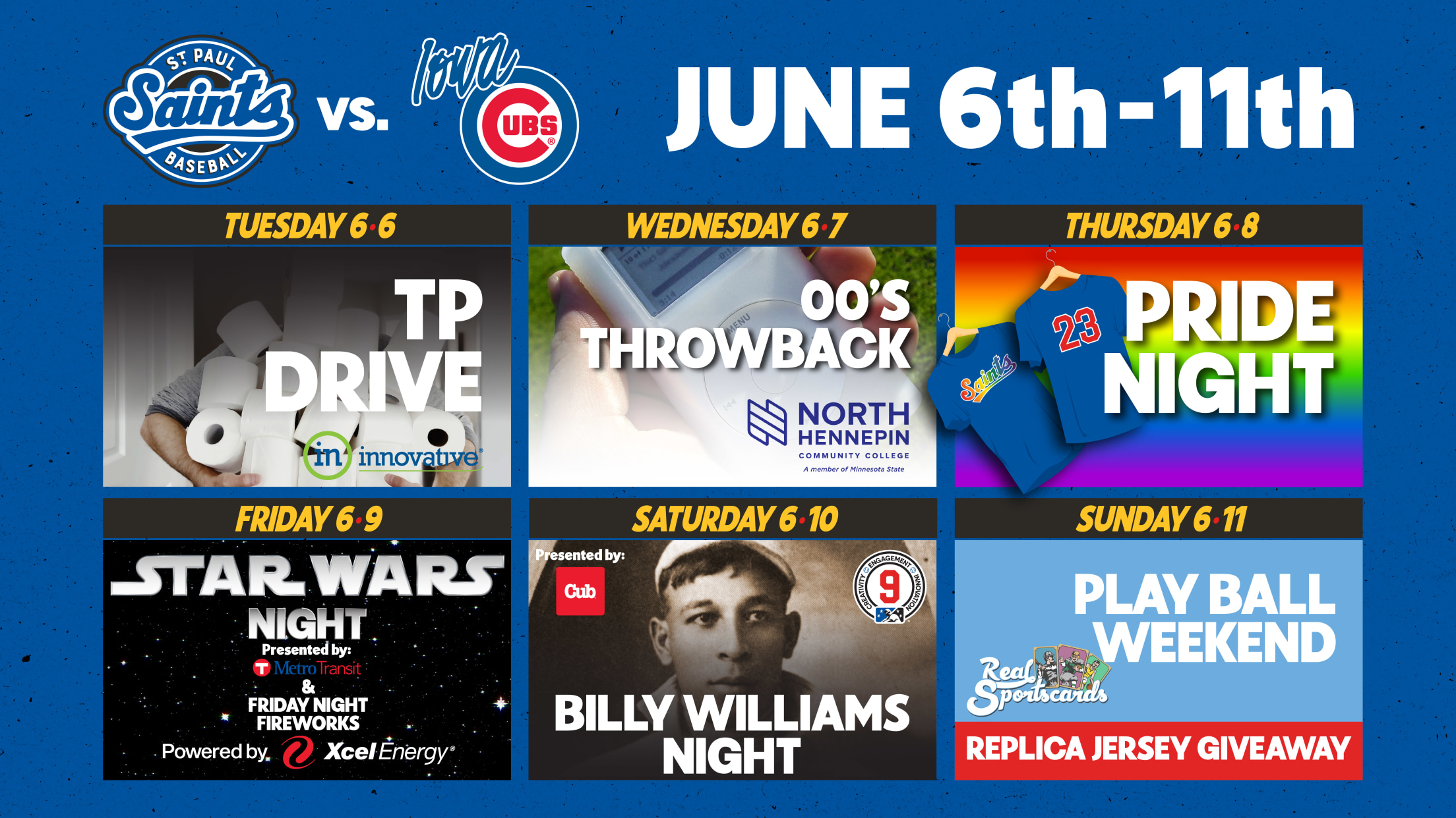 Saturday, June 10 vs. Iowa Cubs, 7:07 p.m. – The Nine, Honoring The Colored Gophers and Celebrating Billy Williams presented by Cub