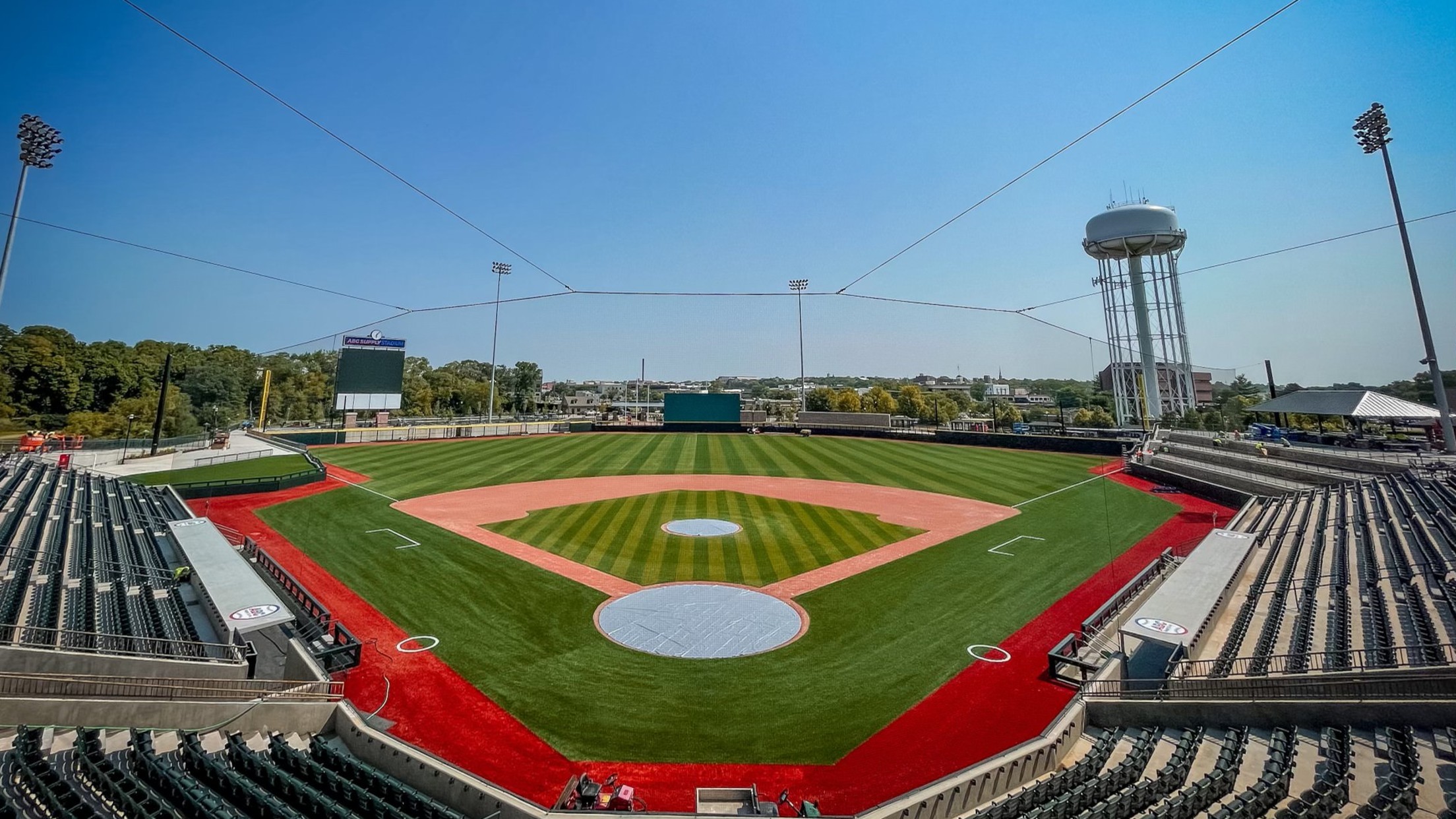 The privately funded, 3,500-capacity downtown multi-use facility features a 360-degree walk-able concourse, two party decks, a 40”x40” high-definition videoboard, grass berm, and a downtown centerfield entrance to the ballpark. Featuring an indoor suite-level ballroom and artificial turf, the stadium will host youth sports, concerts, and other community events throughout the year.