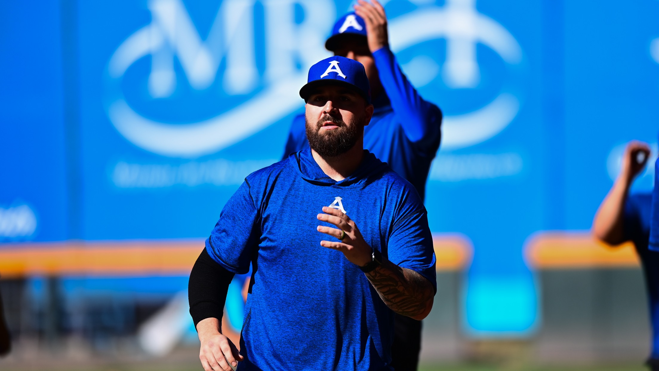 Monclova, Coah. (Acereros-Comunicación) 16 de marzo de 2023.- El lanzador derecho Rob Whalen con experiencia de 3 temporadas en Grandes Ligas y que viene de lanzar para los Indios de Mayagüez en la pelota puertorriqueña fue el rostro nuevo en las prácticas que se celebran en el Estadio Monclova. Whalen,