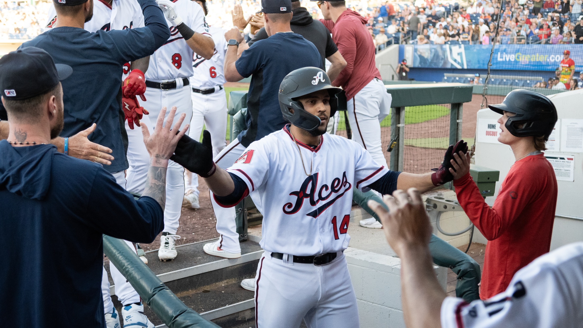 The Aces had a chance to add a fifth run in the sixth inning when Tristin English slugged a long fly ball over the left-field wall. But Sacramento left fielder Grant McCray stole the potential home run when he made a leaping catch over the wall.