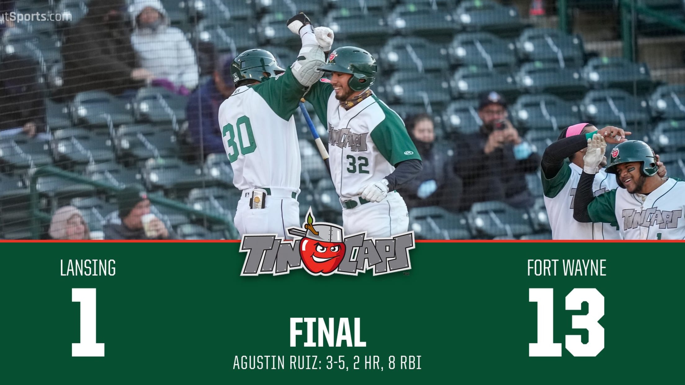 FORT WAYNE, Ind. -- Agustin Ruiz made history in the Fort Wayne TinCaps' 13-1 win over the Lansing Lugnuts (Oakland Athletics affiliate) on Tuesday night at Parkview Field. The 21-year-old Ruiz became just the third player in the franchise's 28-season history to record eight RBIs in a game, joining Tom Knauss (1993) and John Schroeder (1996). He's the first to do so in a home game.