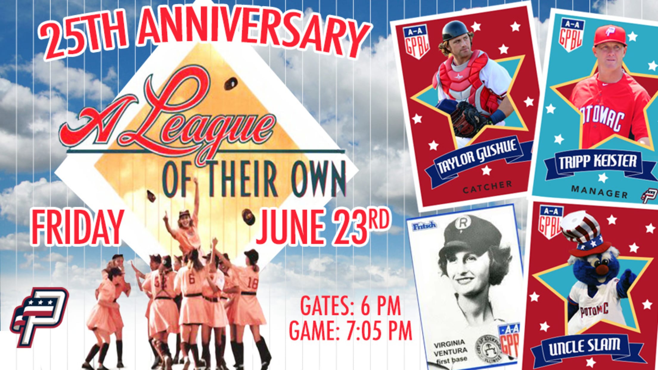 Woodbridge, VA---The Potomac Nationals are excited to announce plans for A League of Their Own 25th Anniversary Night on Flashback Friday, June 23rd at Pfitzner Stadium.The P-Nats will face the Carolina Mudcats (Milwaukee Brewers) at 7:05pm that evening, and the club will celebrate this hallmark anniversary of a classic baseball movie and