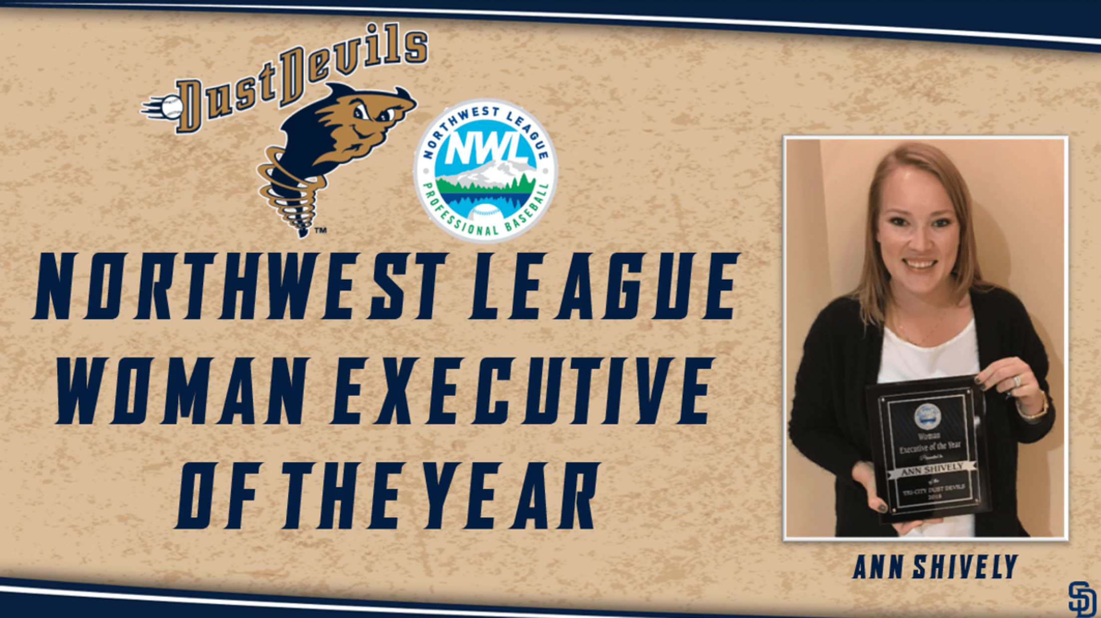 Ann Shively Named Woman Executive of the YearAt the Northwest League meeting in Salem, OR, this week Tri-City Dust Devils Assistant General Manager Sponsorships Ann Shively was honored as the 2018 Northwest League Woman Executive of the Year.The award comes after a season in which the Dust Devils set a