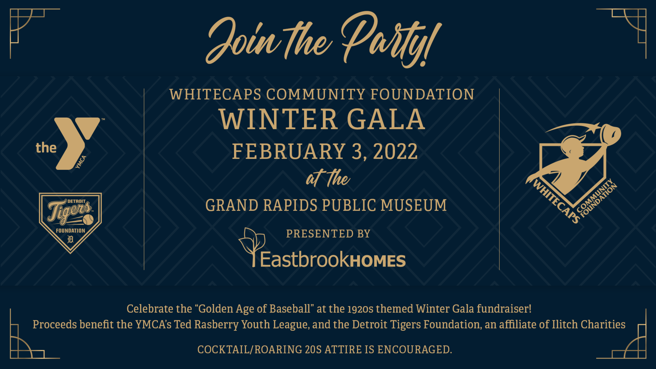 This February, the Whitecaps will celebrate The Golden Age of Baseball, during what is now called the Whitecaps Winter Gala presented by Eastbrook Homes. Proceeds benefit the YMCA Ted Rasberry Youth League and the Detroit Tigers Foundation, an affiliate of Ilitch Charities.