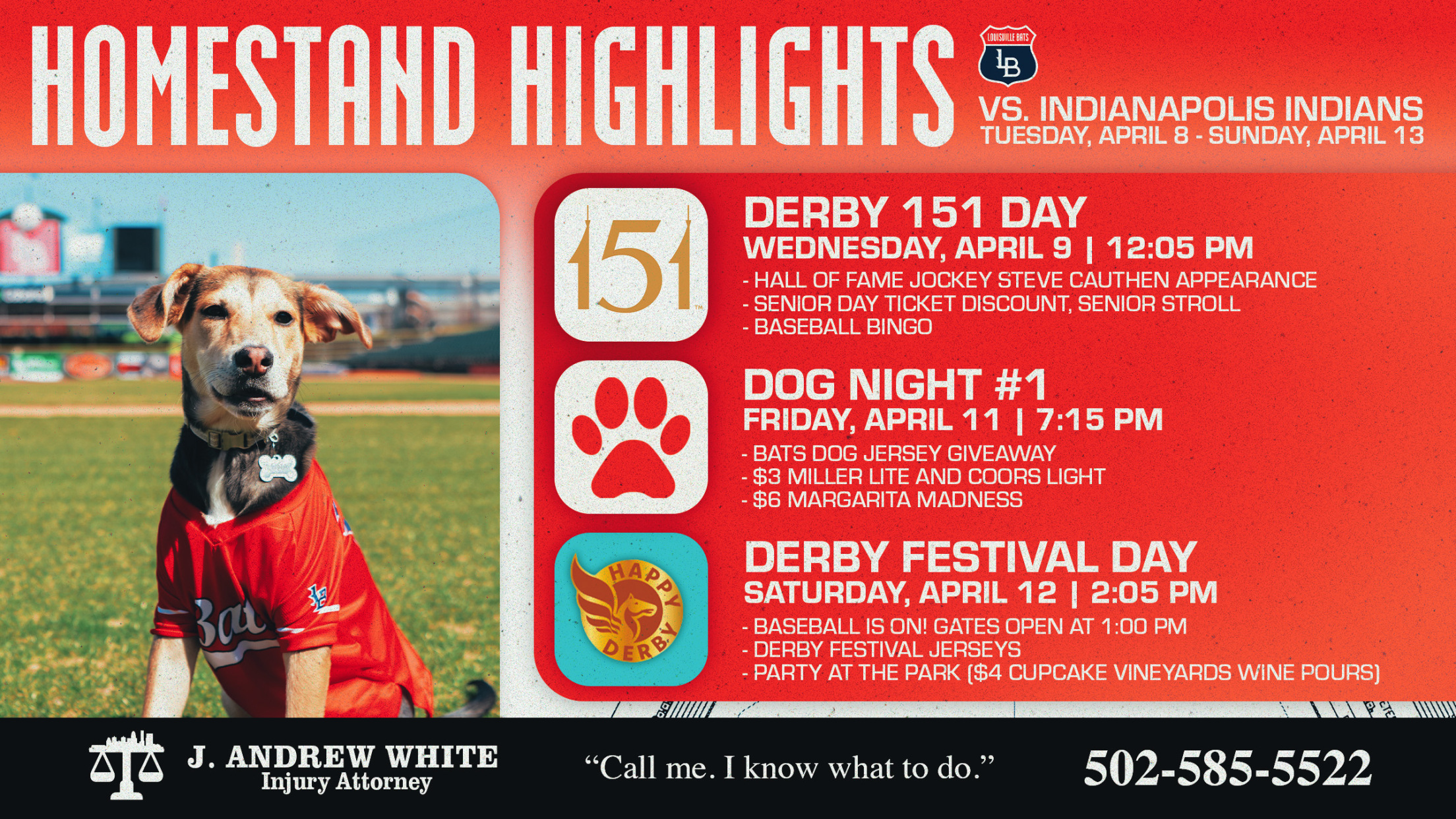 The Louisville Bats will return to Louisville Slugger Field for their first six-game homestand of the season next week! The week will be packed full of promotions and excitement, highlighted by the season’s first 502 Friday and all-day festivities to celebrate Thunder Over Louisville on Saturday.