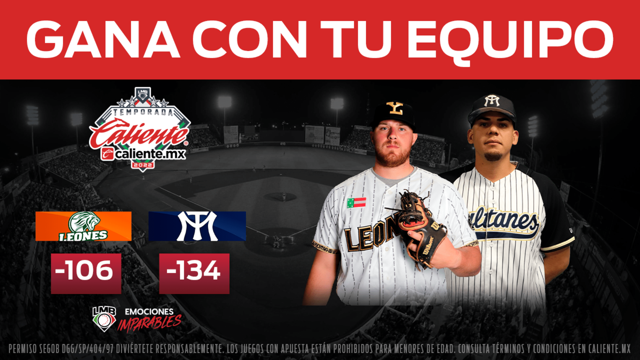 Leones de Yucatán vs, Sultanes de Monterrey -106 -134 *Momios sujetos a cambios Caliente Sports te trae toda la emoción de los deportes en directo sin importar en donde estés. ¡Regístrate hoy para recibir nuestra exclusiva promoción de $400 MXN gratis sin depósito! Disfruta hoy mismo de esta exclusiva promoción