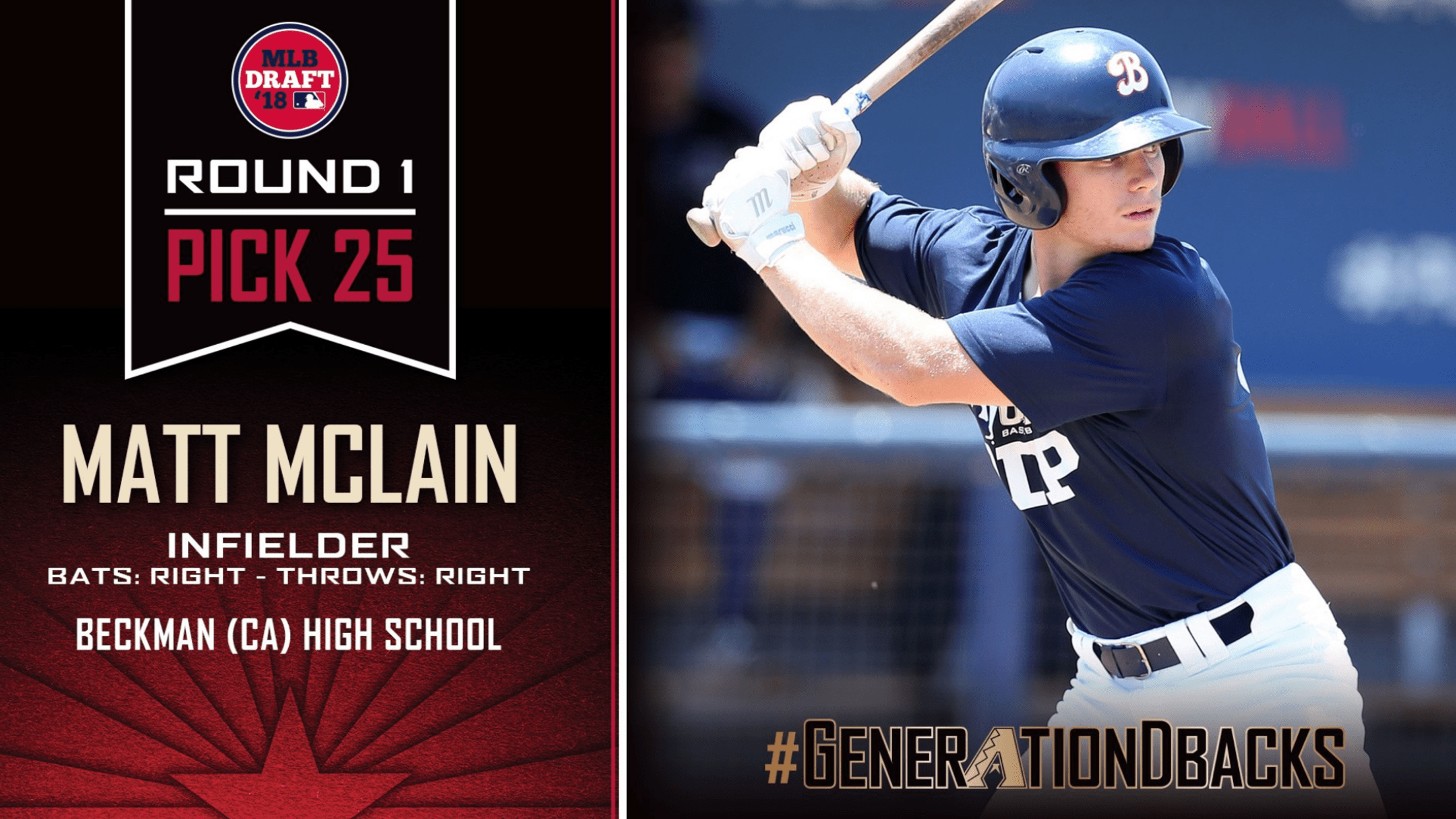 With three picks in the first two rounds to open the 2018 Major League Baseball Draft, the Arizona Diamondbacks selected two high school prospects and a speedy Virginia outfielder. The team made Beckman High School infielder Matt McLain the No. 25 overall pick in round one, while drafting a Virginia