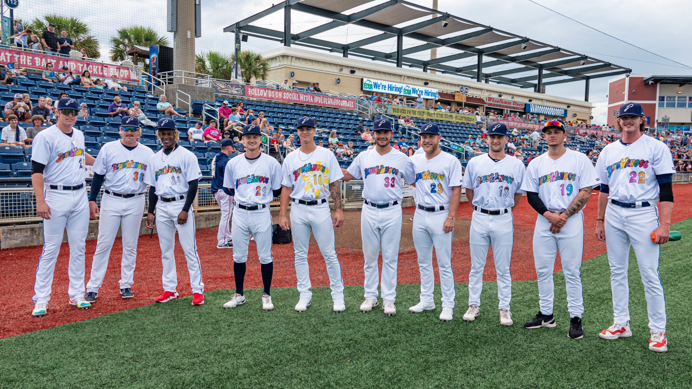 Fans at Saturday's game at Blue Wahoos Stadium witnessed history, as Pensacola became the first baseball team ever to have every player take the field in a different jersey designed by a different fan. For this first-of-its-kind promotion, half of the team's uniforms were designed by local fans who purchased