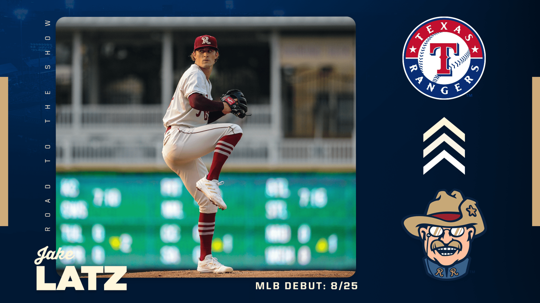 FRISCO, Texas (August 26, 2021) – Former RoughRiders pitcher Jake Latz made his Major League Baseball debut with the Texas Rangers on Wednesday against the Cleveland Indians at Progressive Field.