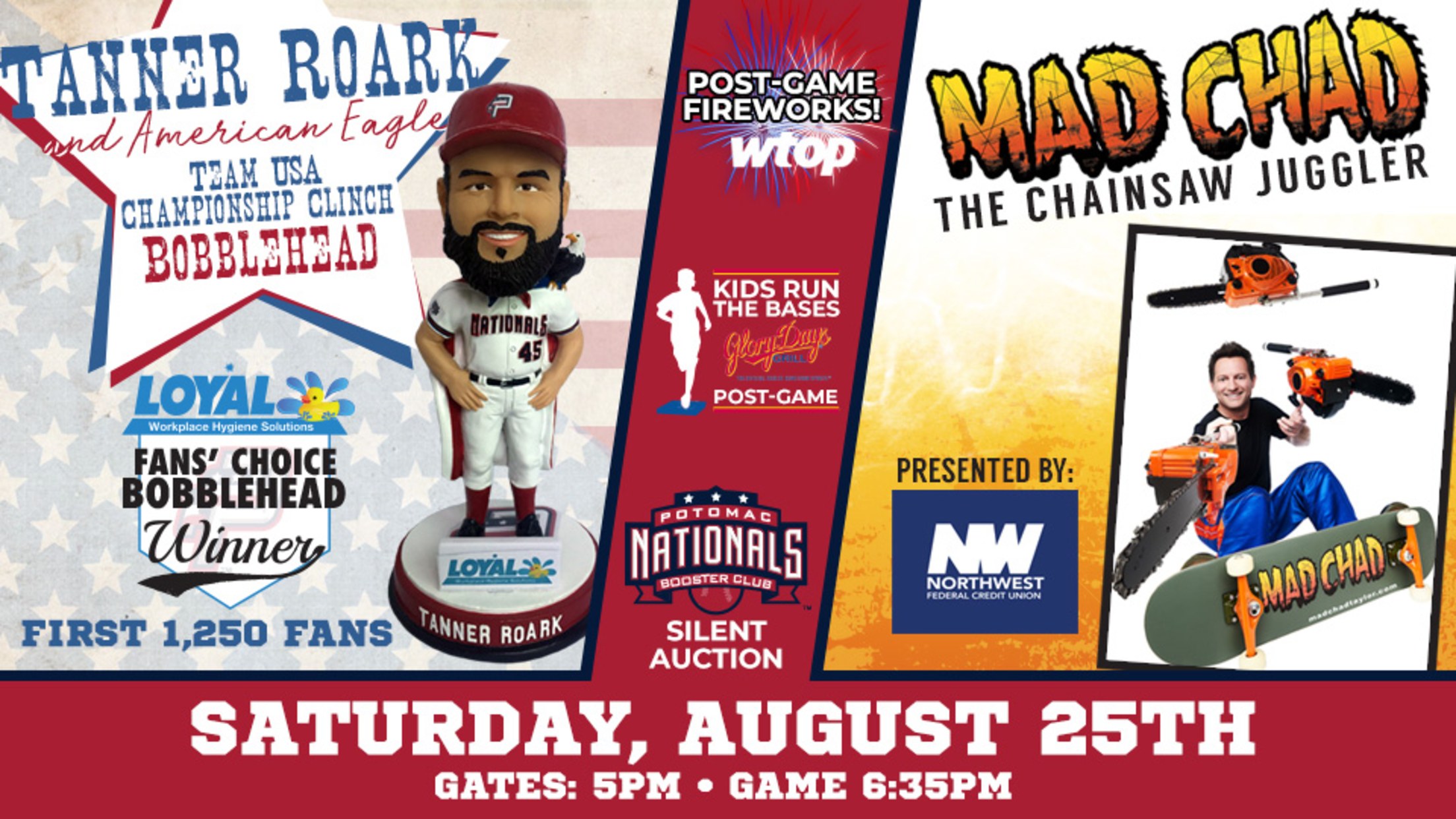 P-Nats to Host Comedic Juggler Mad Chad Taylor, Fans' Choice Tanner Roark & American Eagle Team USA Championship Clinch Bobblehead Giveaway, Both on Saturday, August 25th