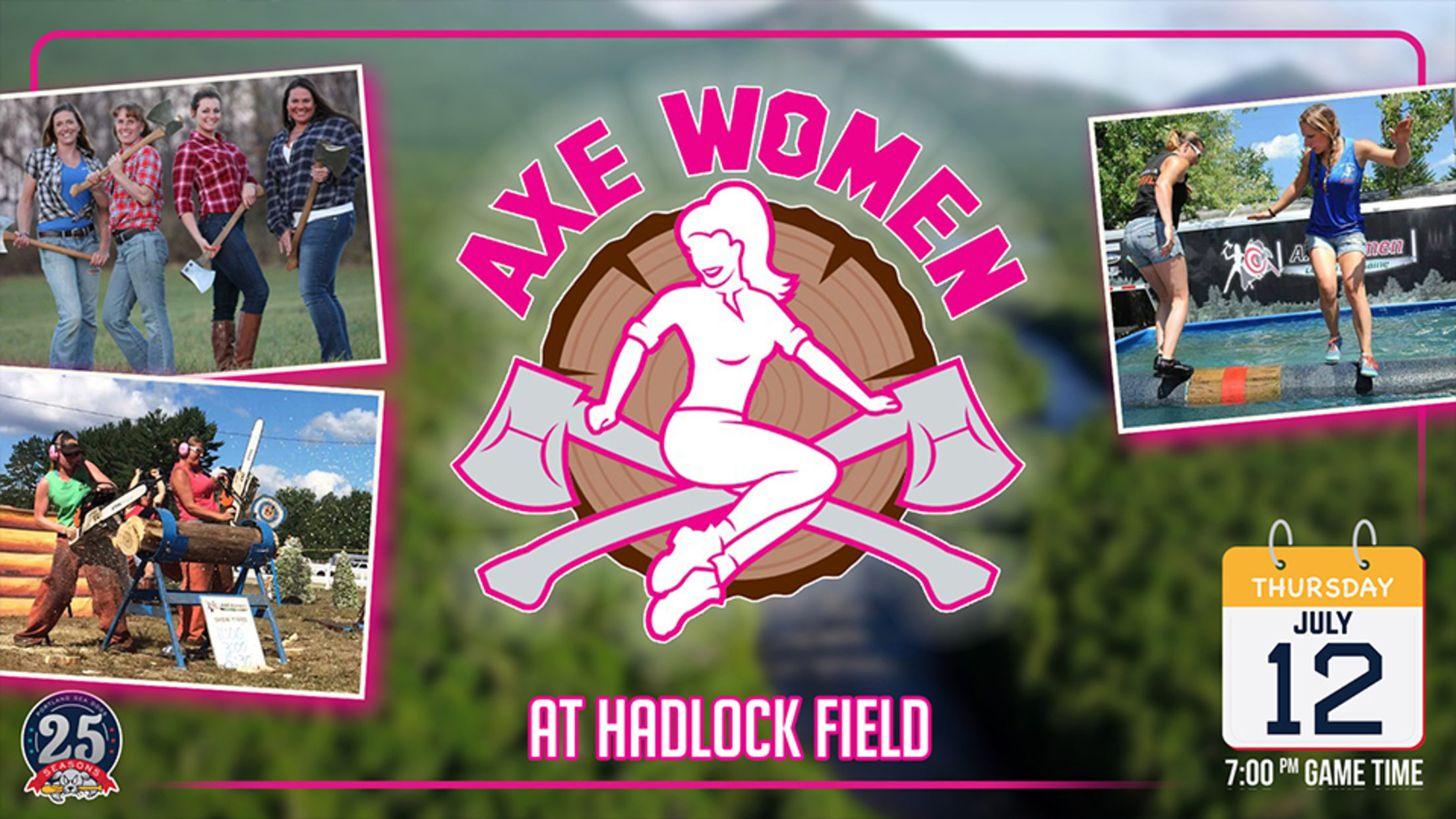 The Axe Women will be performing pre-game on the field as well as between select innings throughout the game. Don't miss their exciting performances, gates open at 5:30 PM. Their Hadlock Field appearance will include the hot saw, underhand chop, standing block chop and axe throwing.