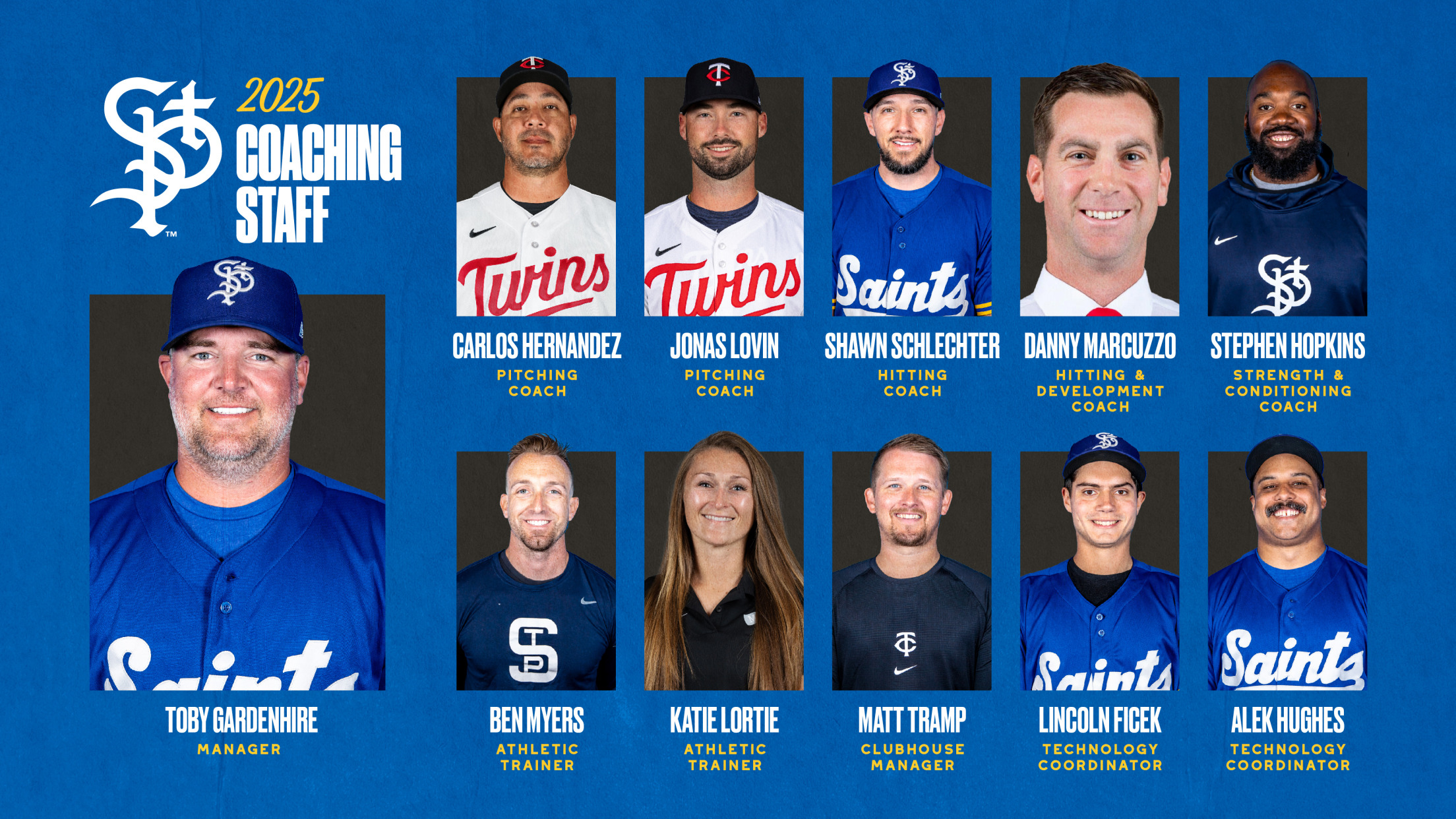 ST. PAUL, MN (January 21, 2025) - Stability at the managerial position is something the St. Paul Saints have had since their inaugural season as an organization in 1993. They had just five managers in 28 seasons as an Independent League team. When they became the Minnesota Twins Triple-A affiliate in 2021, Toby Gardenhire was given the reigns as the first manager in the affiliated ball era. The Minnesota Twins announced on Tuesday that Gardenhire will continue at the helm of their Triple-A franchise. He will once again be joined by Hitting Coach Shawn Schlechter (second season), the lone returning coach from the 2024 staff. The new faces will include Hitting & Development Coach Drew Marcuzzo, along with a couple of pitching coaches promoted from within the system: Carlos Hernandez, from Double-A Wichita, and Jonas Lovin, from High-A Cedar Rapids. Rounding out the staff are five returning members and one other promotion from the Twins system: Strength & Conditioning Coach Stephen Hopkins returns for his second season, joined by Athletic Trainers Ben Myers, his fourth season with the Saints, and Katie Lortie, promoted from Wichita, AAA Clubhouse Manager/Assistant, Baseball Operations Matt Tramp, fifth season, and Coordinators, Baseball Technology Lincoln Ficek and Alek Hughes, both returning for their fourth seasons.