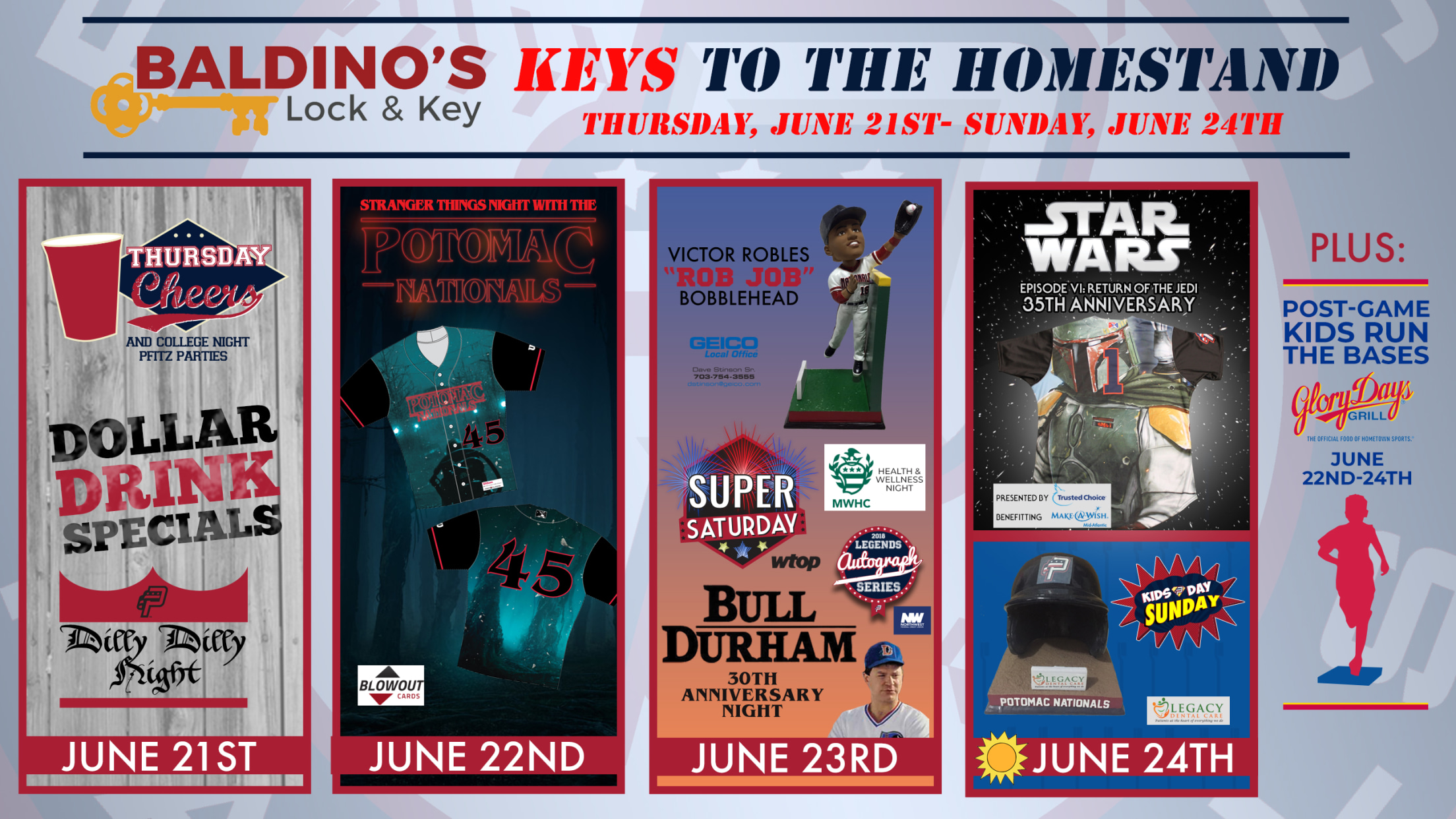 Baldino's Lock & Key Keys to the Homestand: June 21st - June 24th
