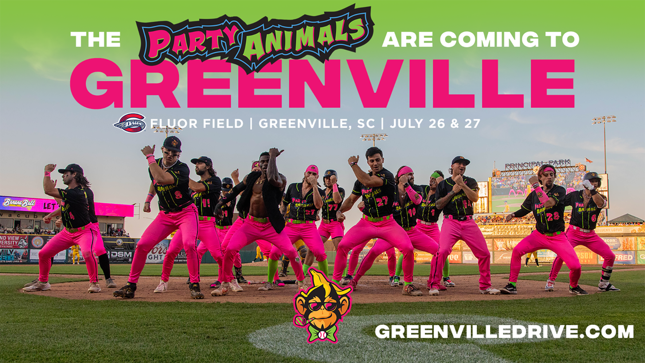 “We are thrilled to have Fluor Field included in the Banana Ball World Tour, and especially to be included as part of the Party Animals’ first-ever headlining tour,” said Drive general manager Eric Jarinko. “Fluor Field is home to the best fans in baseball and we’re excited for the Party Animals to see just how much energy the crowds in Greenville will bring.”