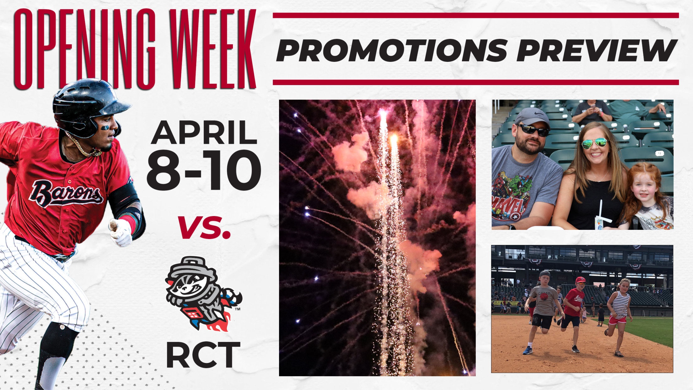 - Friday Night Fireworks: After the game, fireworks will light up the Magic City sky thanks to Coca-Cola, Comfort Care Hospice and Home Health, and Alabama Power.