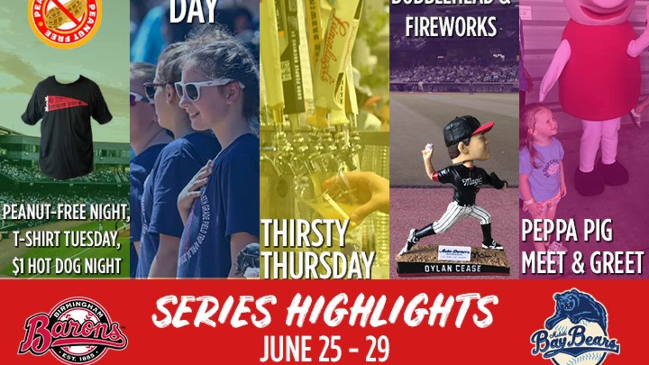 - Peppa Pig & George Appearance: Peppa Pig and George are back at Regions Field this Saturday for a special meet & greet with fans thanks to St. Vincent's Health System, a part of Ascension & Hilton Birmingham at UAB