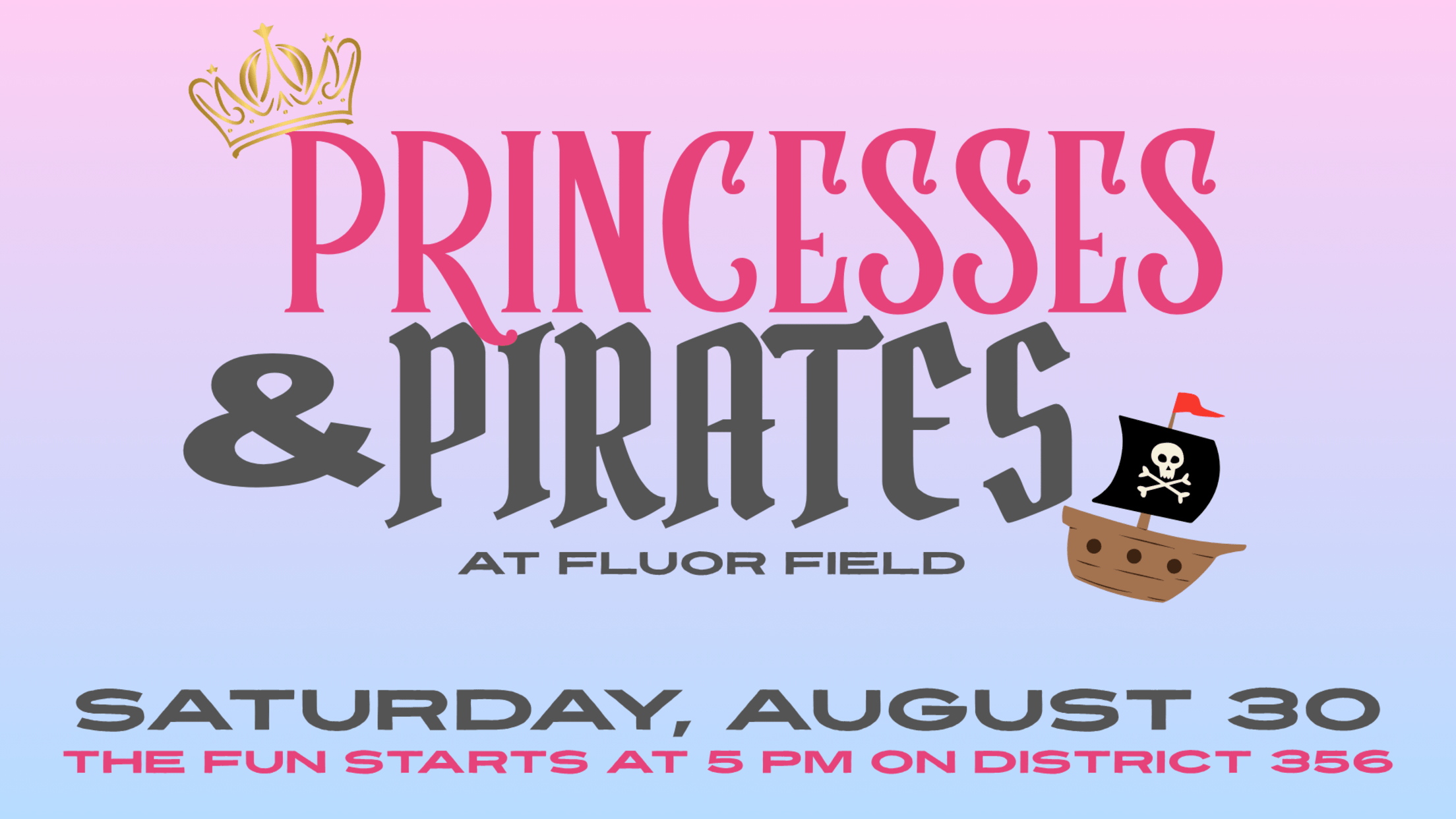 Baseball Meets Fairytales & High Seas Princesses & Pirates returns to Fluor Field on Saturday, August 30 for a royally good time! This special ticket package gets your family up close and personal with princesses, pirates, Reedy, and more! The fun starts at 5 PM on District 356 at Saturdays