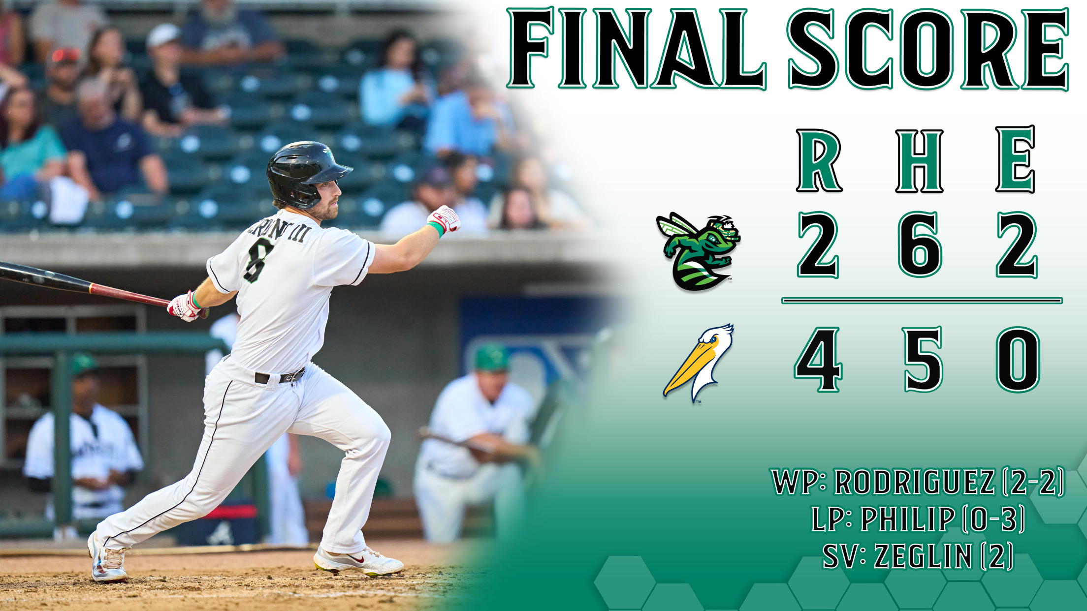 The GreenJackets would threaten late, loading the bases against Rodriguez and his successor Nico Zeglin. But Zeglin induced a hard ground ball right at the second baseman from Drew Compton to keep the Pelicans in front. Zeglin allowed just one hit and drew his 2nd professional save for his scoreless work. Myrtle Beach would add an insurance run in the bottom of the 8th off of Will Silva, thanks to two walks, a catcher’s interference, and a botched fielder’s choice.