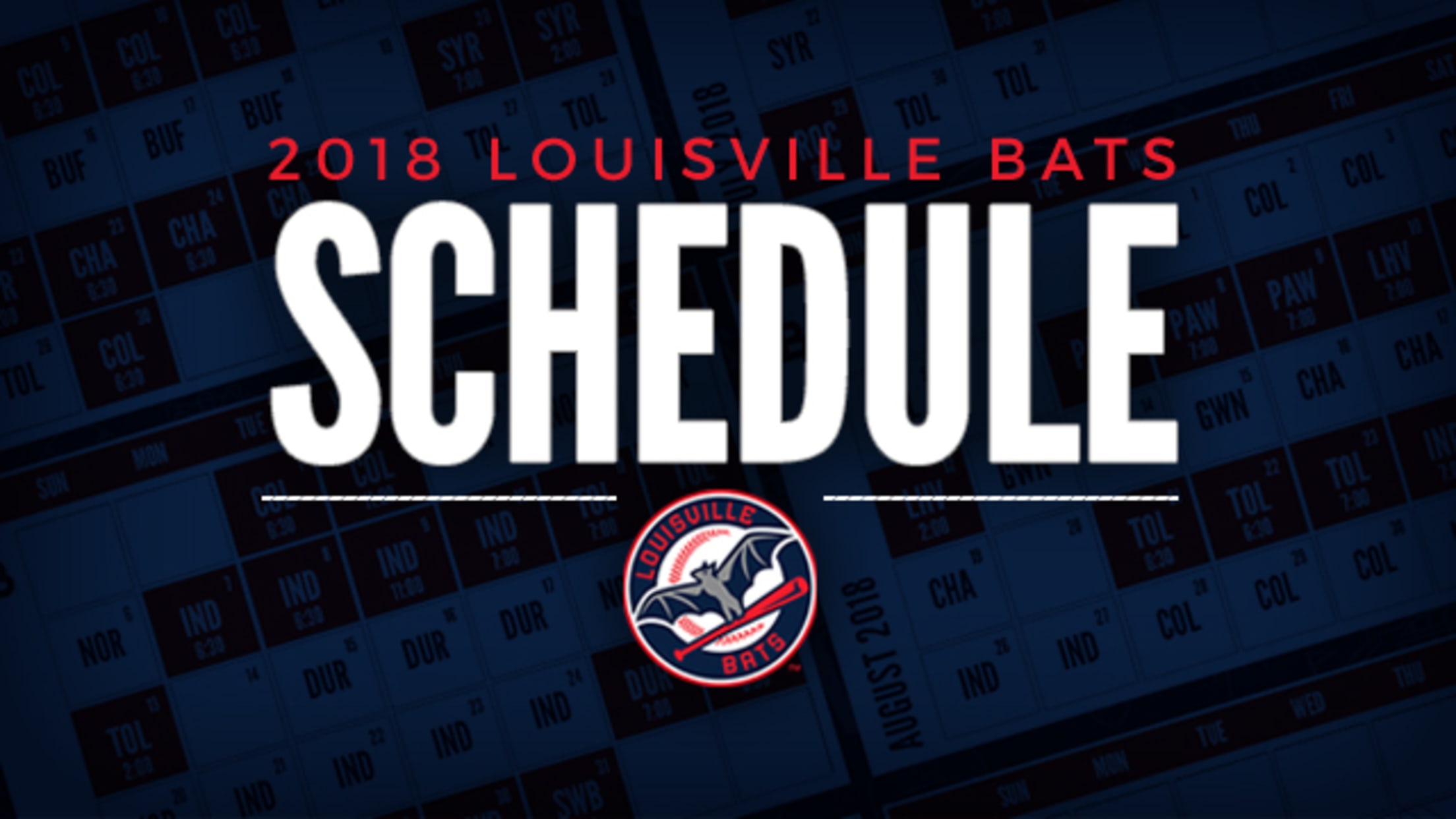 Download the entire 2018 schedule HERELOUISVILLE, Ky. - The Louisville Bats have released their schedule for the 2018 season. The 2018 season will mark both the franchise's 19th year of baseball at Louisville Slugger Field and 19th year as the Triple-A affiliate of the Cincinnati Reds.The Bats will open the