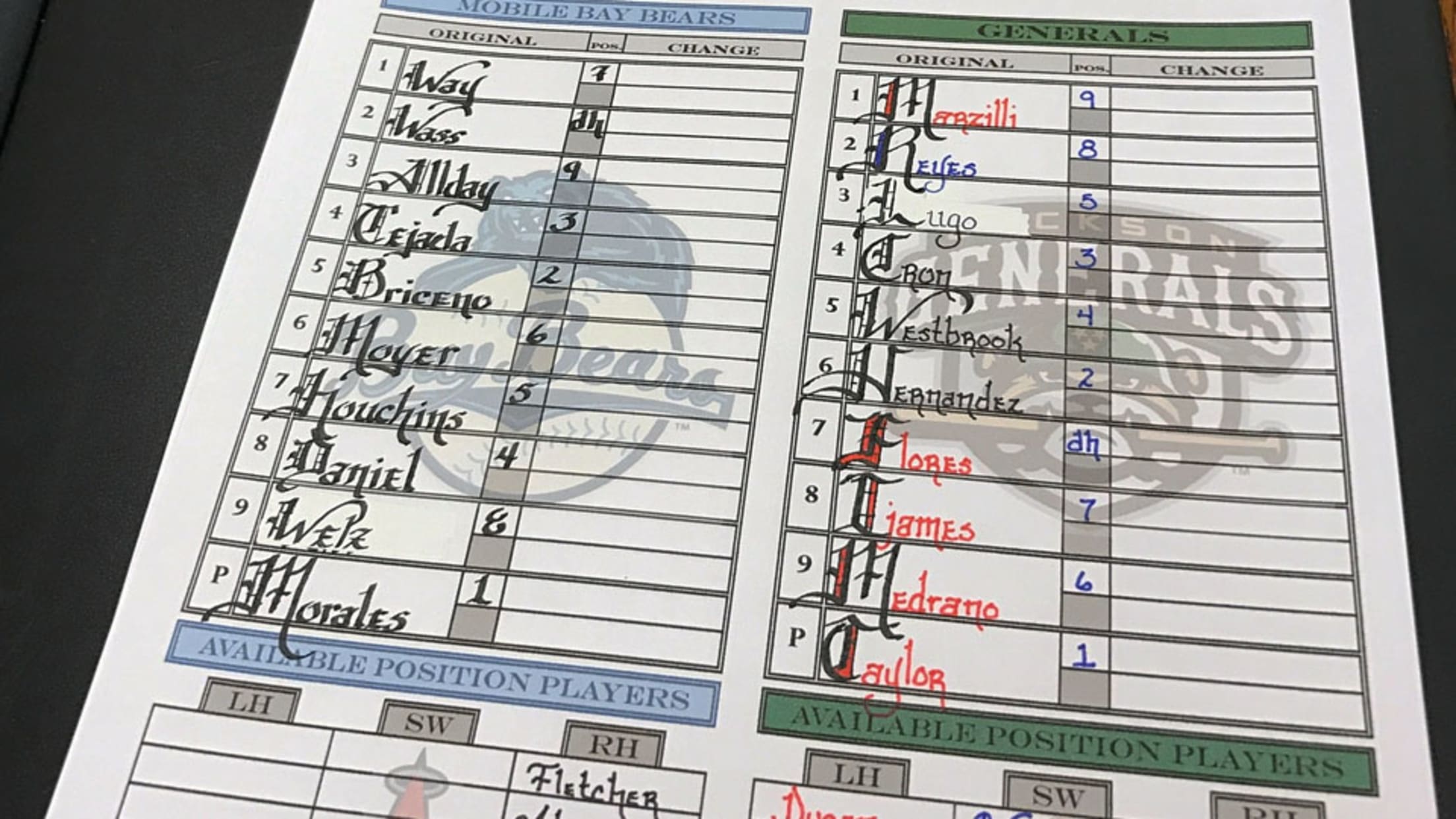 "At the places we tend to hang out at here, there's not too much when it comes to calligraphy stores," he said. "And I've noticed the humidity of the Southern League makes it harder to write on paper. I'm going to have to get a dehumidifier for my lineup card."