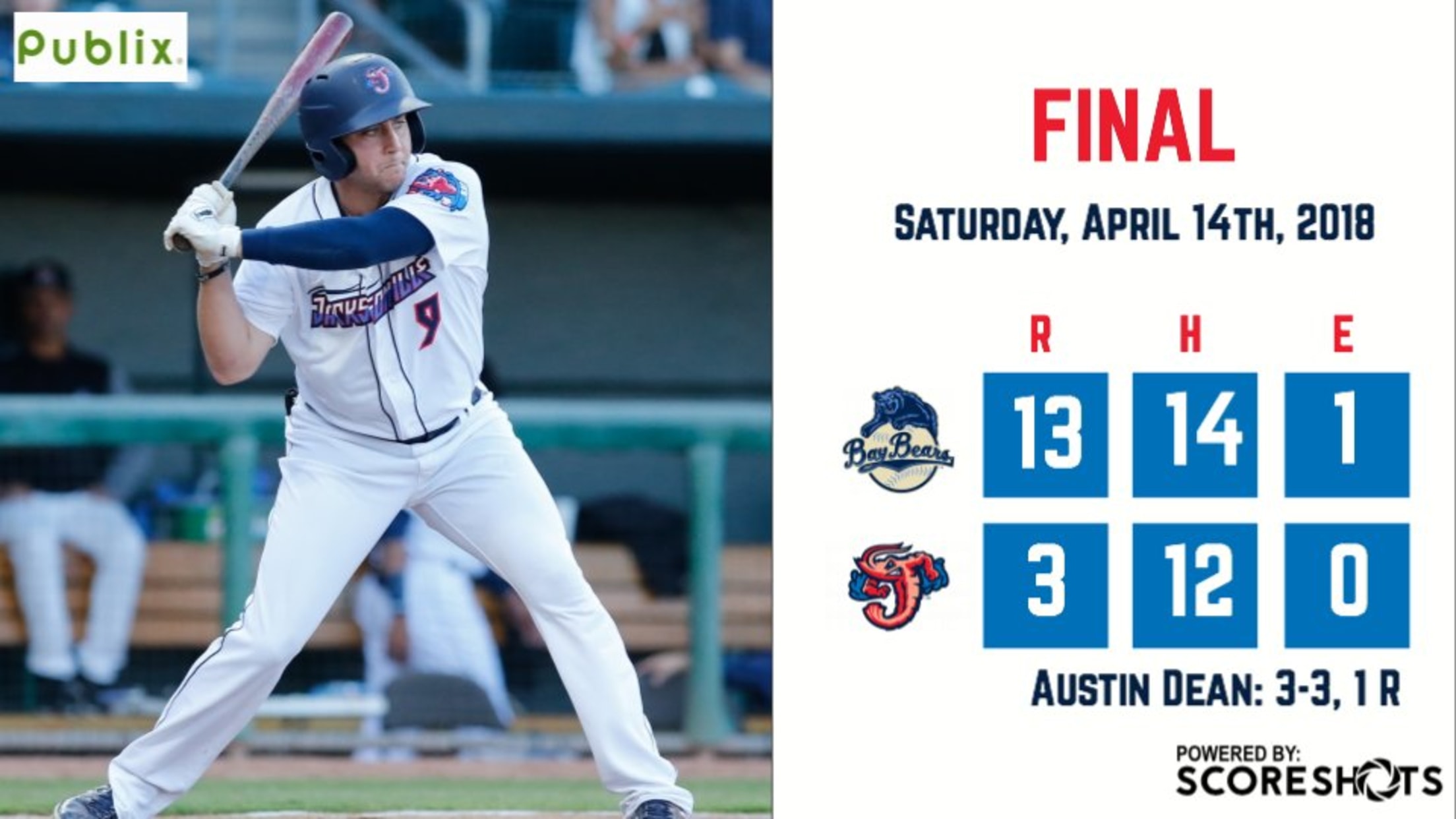 JACKSONVILLE, Fla. - The Mobile BayBears hit three home runs and posted five runs in both the sixth and ninth innings in a 13-3 win that halted the Jacksonville Jumbo Shrimp's three-game winning streak before 10,254 saw the season's first Saturday Fireworks - a series that will continue through June 16 - at the Baseball Grounds of Jacksonville.