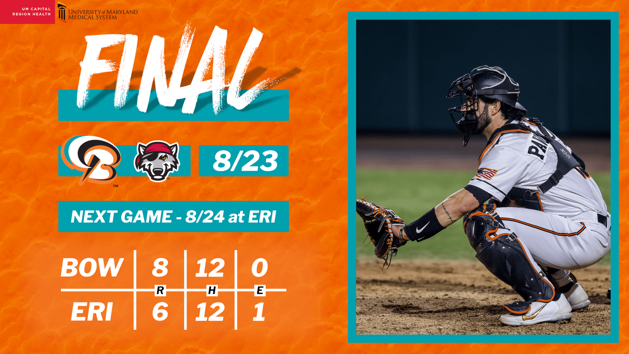 ERIE, PA – Hoping to extend for their second five-game win streak of the season, the Bowie Baysox needed ten innings to outlast the Erie SeaWolves on Wednesday night. Bowie overcame a four-run deficit, saw their own two-run lead erased in the ninth inning, and plated two runs in the tenth to win 8-6.