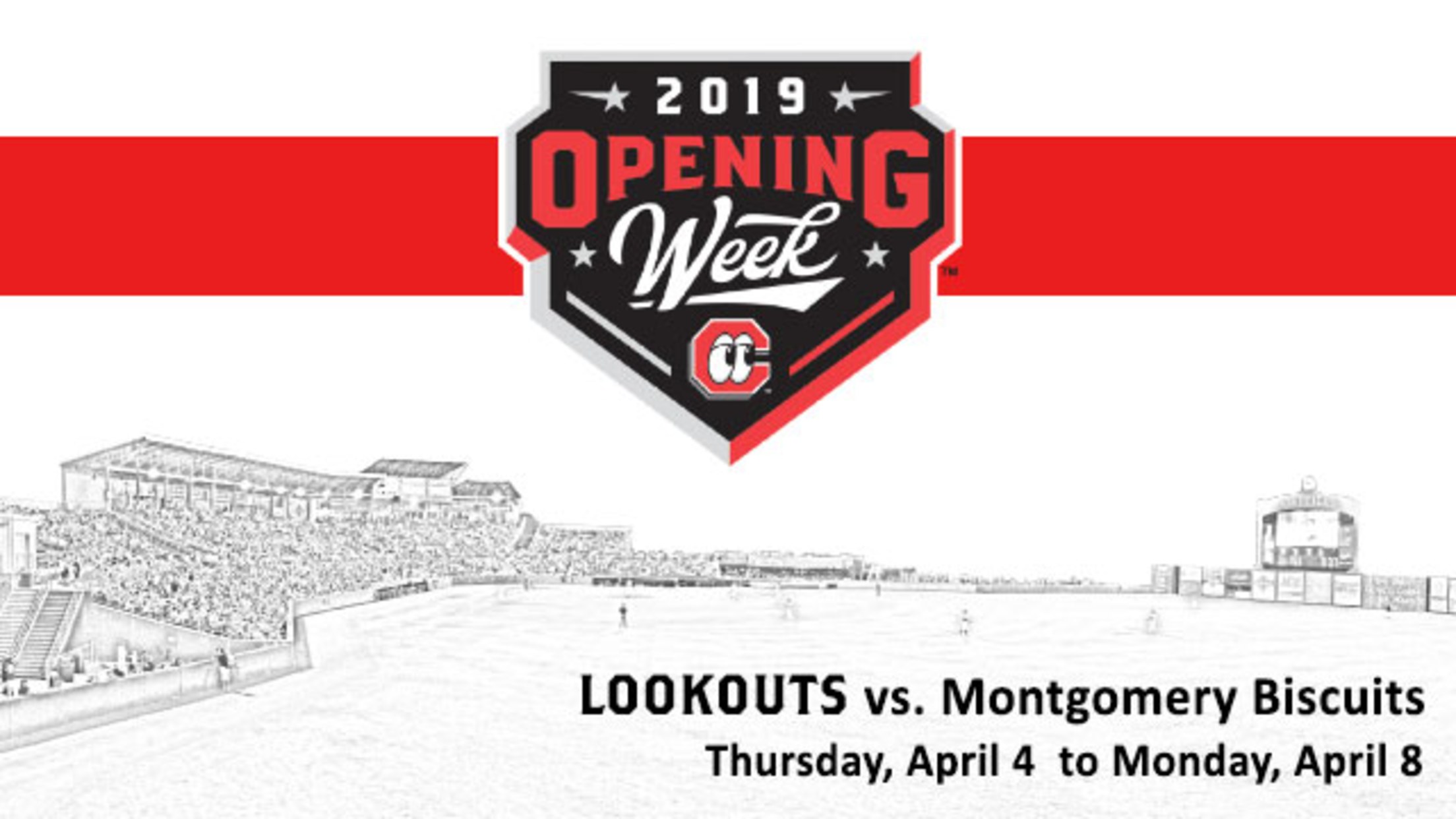 Our 2019 season is here! Join your Chattanooga Lookouts for Opening Day Thursday, April 4. The Lookouts opening series versus the Montgomery Biscuits, Double-A affiliate of the Tampa Bay Rays, continues through Monday, April 8. The Lookouts host for a five-game series with a promotional lineup including the following highlights: Thursday,