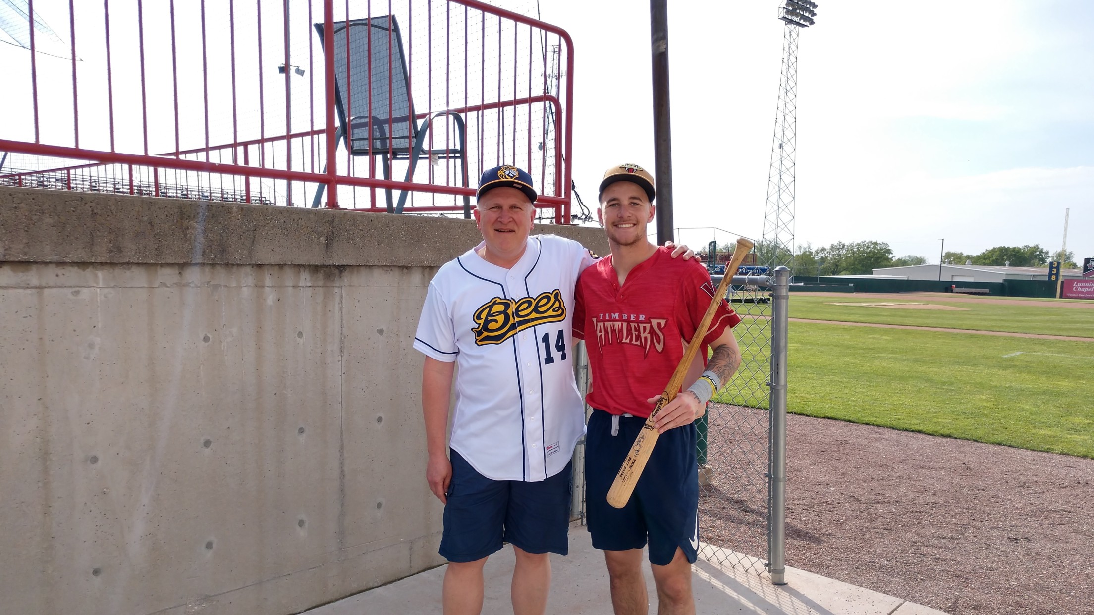 Mogk thought Brice might appreciate having the piece of memorabilia. He caught up with him after the first game between the Bees and Timber Rattlers. Marty asked him if he would like it. He certainly did. To add to the fun, Turang's sister was in town to watch her brother play.