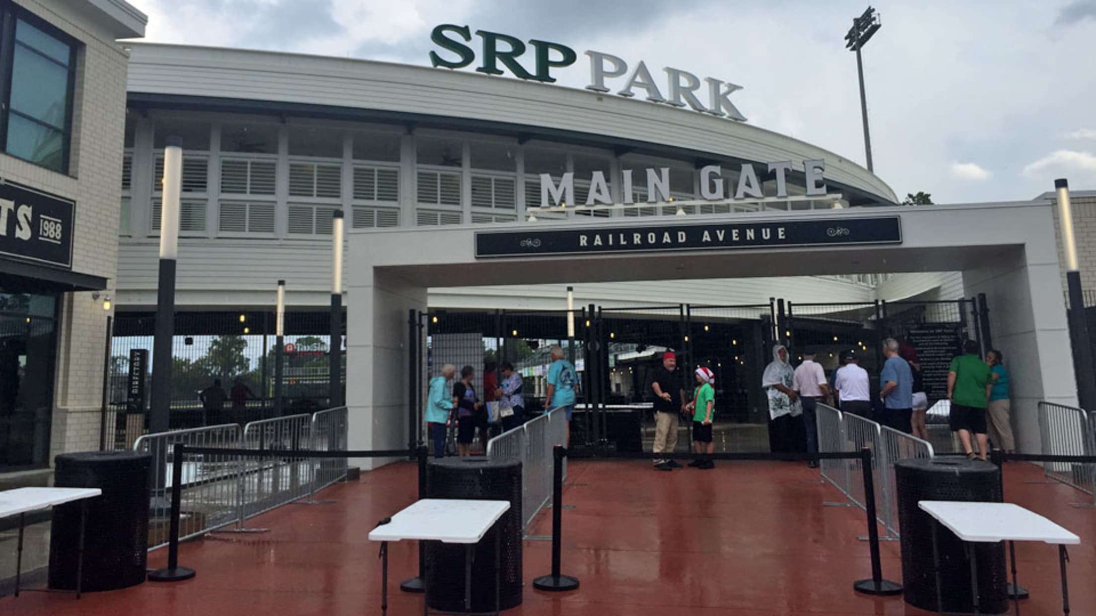 SRP Park, built at an estimated cost of $42 million, is the centerpiece of the Riverside Village development project. Riverside Village, originally called Project Jackson, is a "live, work and play ball" venture that includes (or, more accurately, soon will include) a Crowne Plaza Hotel, shops, bars, restaurants, office space and apartments and more. As is so often the case when city governments, public opinion and millions of dollars are involved, the GreenJackets' new digs took a long time to come to fruition. The team's attempts to build a new ballpark to replace the isolated and operationally difficult Lake Olmstead Park can be traced back to 2007; the plans for Project Jackson, meanwhile, were first unveiled in 2012.