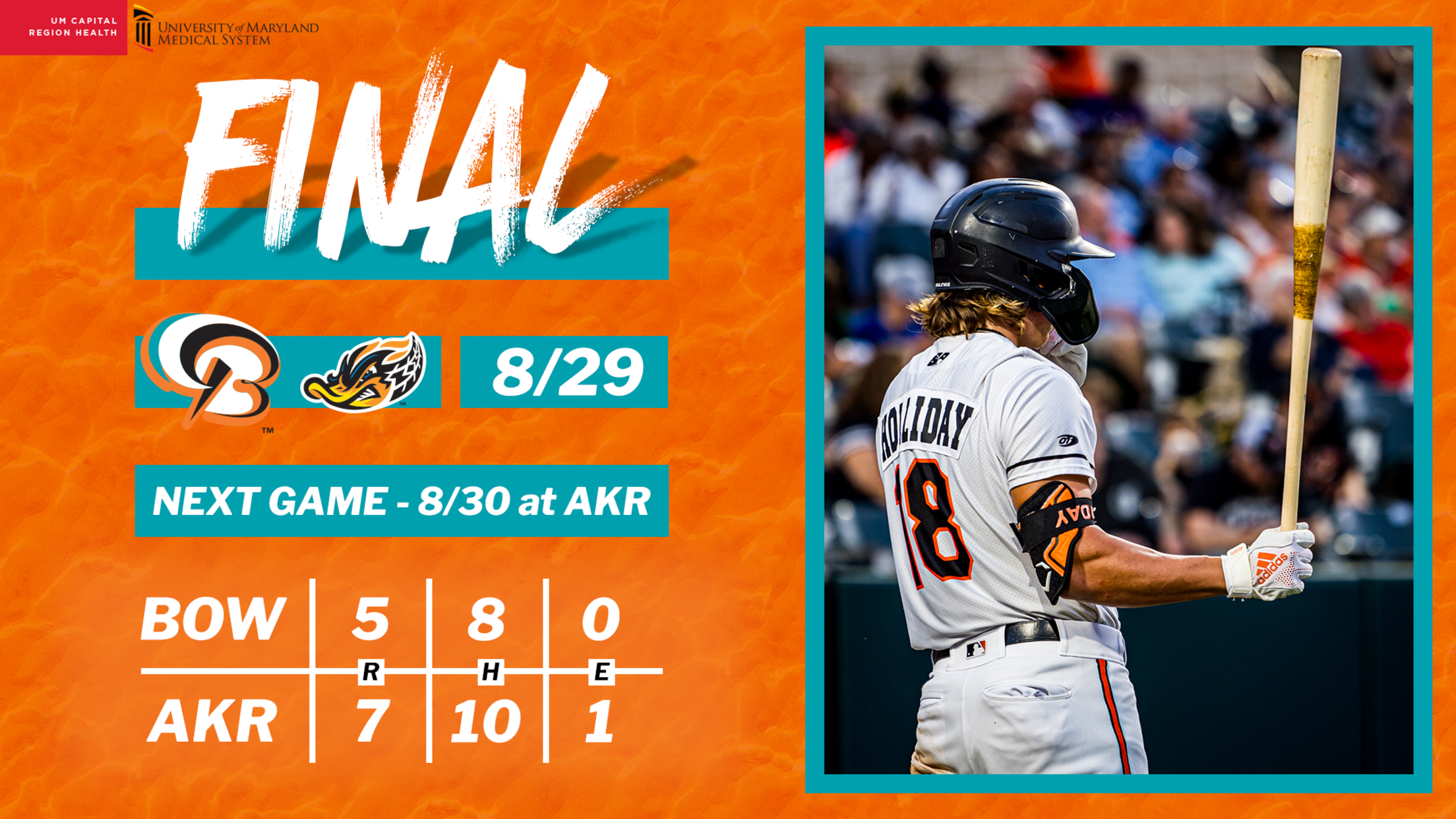 AKRON, OH – The Bowie Baysox lost their second-consecutive game on Tuesday night, this time a series-opening loss to the Akron RubberDucks. Bowie kicked off the second half of their 12-game road trip with an early lead, but still fell 7-5.