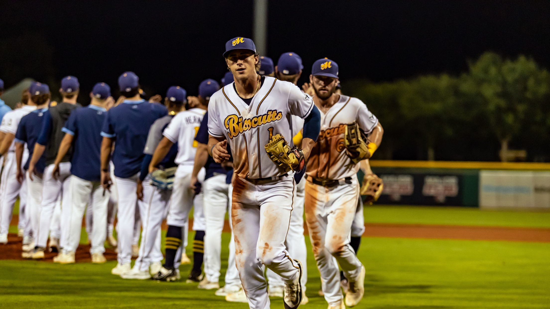 The Biscuits pitching staff dominated from start to finish, allowing six hits and four walks while striking out seven. The performance allowed Antonio Jimenez (1-0) to secure the victory while Bush took the loss as the Butter and Blue secured a 12-1 victory.