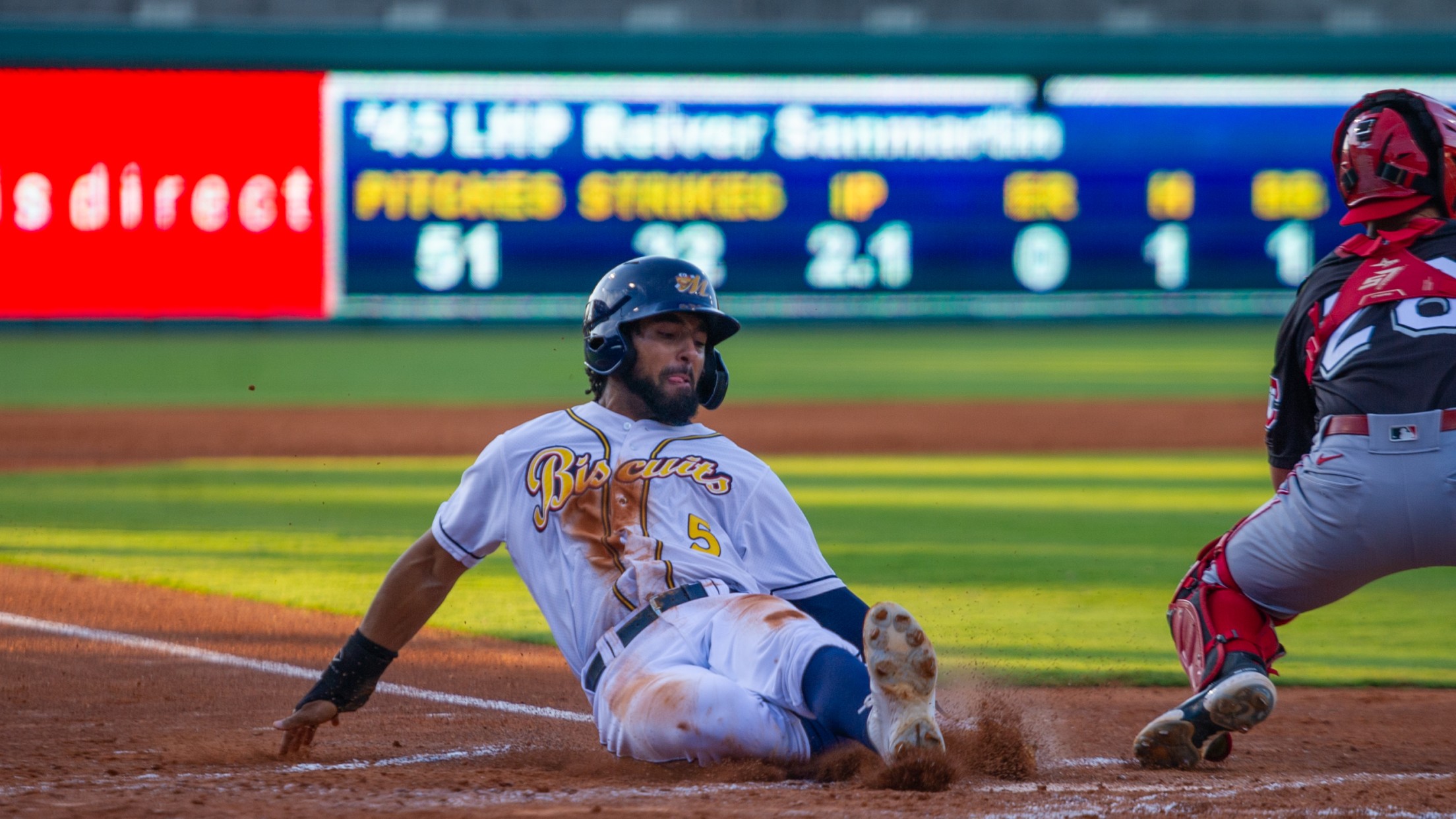 Cristofer Ogando and Joel Peguero each pitched a scoreless inning of relief after Jordan Brink went 1.1 scoreless, and the Biscuits offense couldn’t scratch another regulation run off Biegalski who finished with nine strikeouts. Alex Valverde (2-1) then struck out the side in the bottom of the ninth and sent the game to extras.