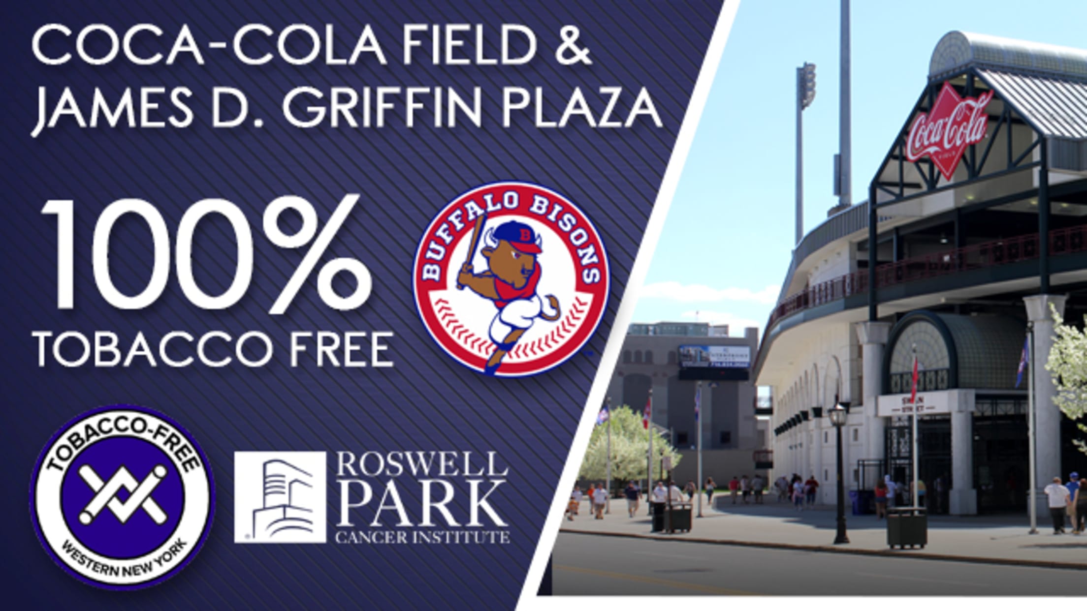 The Buffalo Bisons have announced additional measures to ensure that Coca-Cola Field and the James D. Griffin Plaza around the ballpark are both smoke-free and tobacco-free for all events in 2017.In cooperation with Roswell Park Cancer Institute and Tobacco-Free Erie-Niagara, the use of all tobacco-related products, including the use of