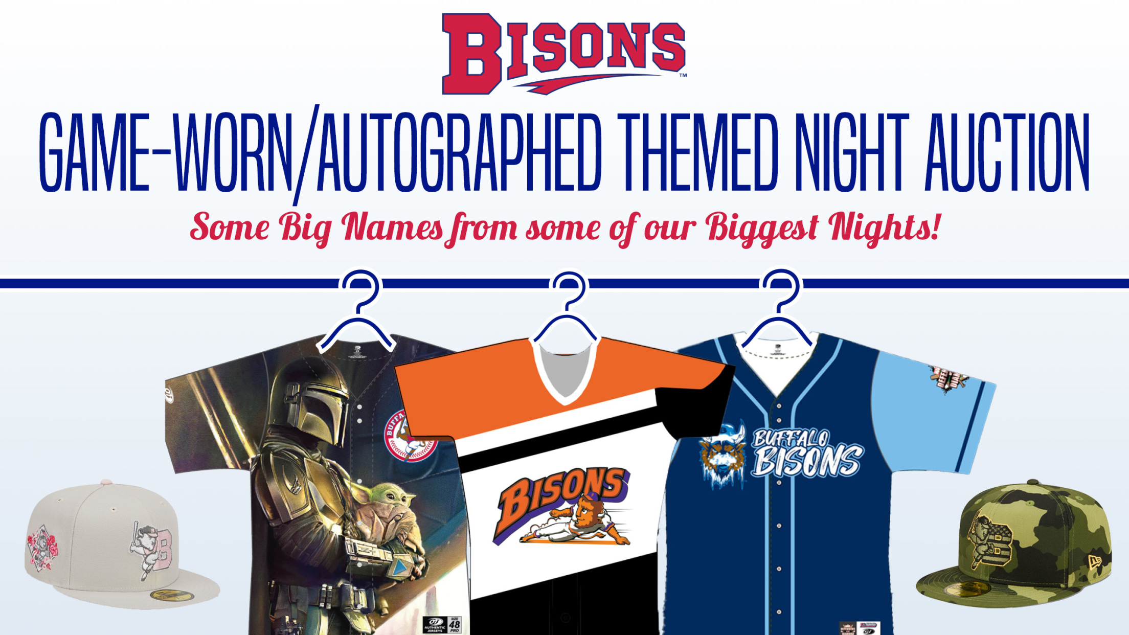 BID NOW: Bisons Themed Night Jerseys & Caps.strValue1=cafteams&fsList[0].strValue2=bisons&sort=$sort&layout=listview) Get ready to bid, because we've got some big names from some big events for a very special Bisons.com Auction.strValue1=cafteams&fsList0].strValue2=bisons&sort=$sort&layout=listview) happening right now to benefit the Buffalo Bisons Charitable Foundation. Game-worn and Autographed items from Spencer Horwitz, Gabriel Moreno, Orelvis Martinez, Ernie