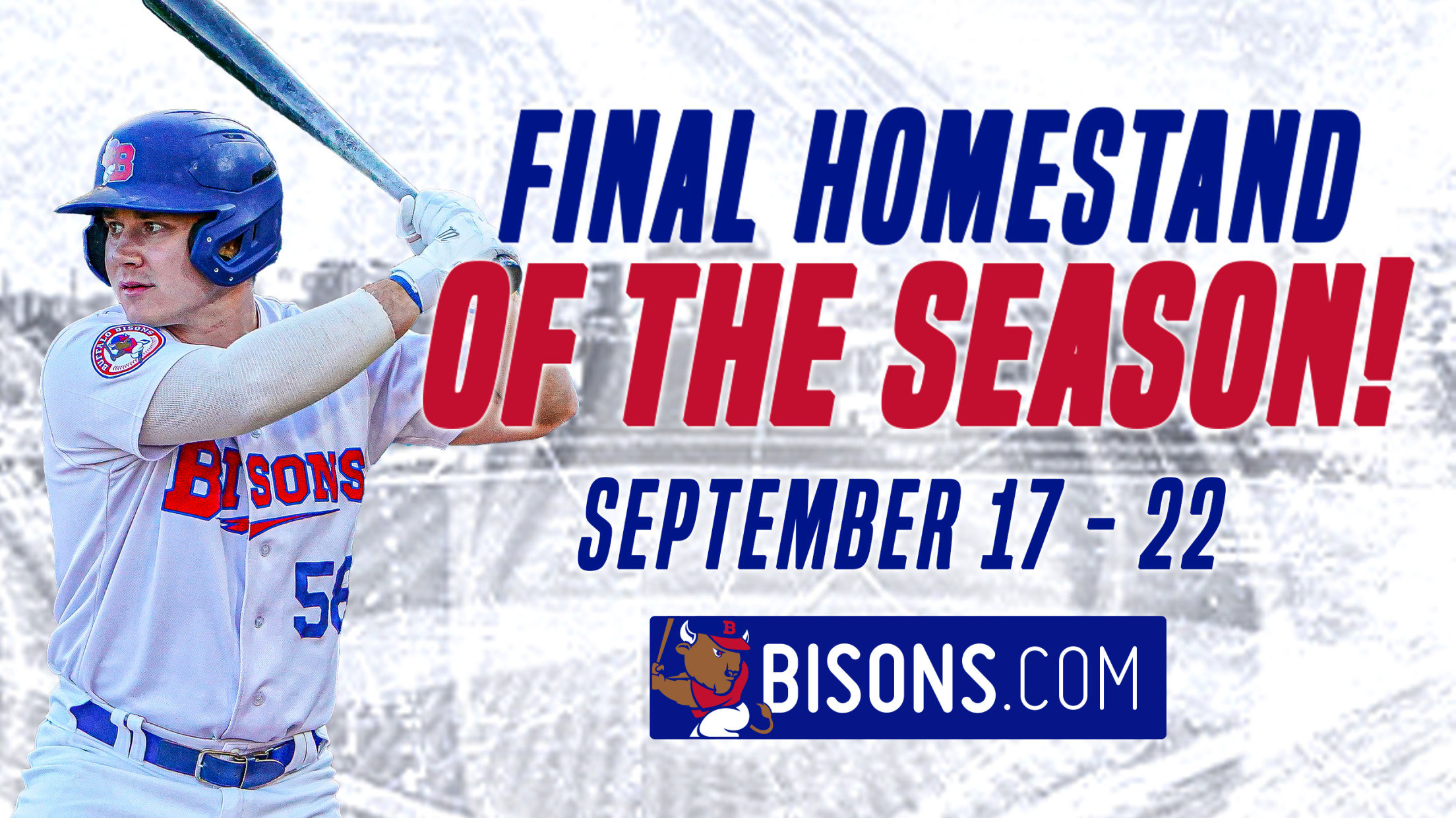 GET MY FINAL HOMESTAND TICKETS With a tremendous forecast and a jam-packed lineup of events, the Bisons will begin their Final Homestand of the Season at Sahlen Field TONIGHT with the first of six straight games against the Scranton/Wilkes-Barre RailRiders (6:05 p.m. | Gates 5:00 p.m.). Summer is not over