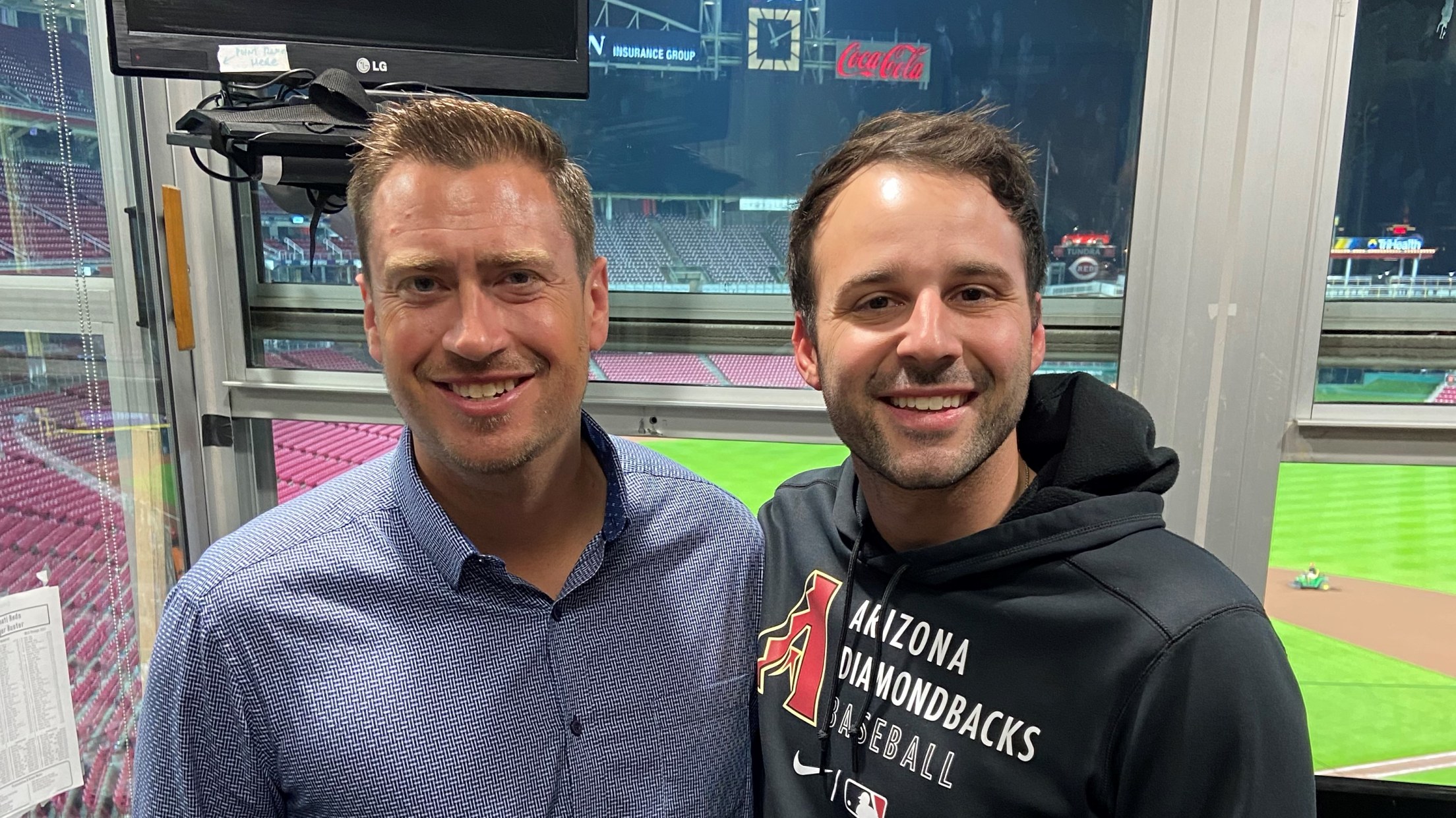 The two close friends, both having reached the mountaintop in their profession, are in separate broadcast booths at Cincinnati’s Great American Ballpark, working the four-game series between the Reds and Diamondbacks.