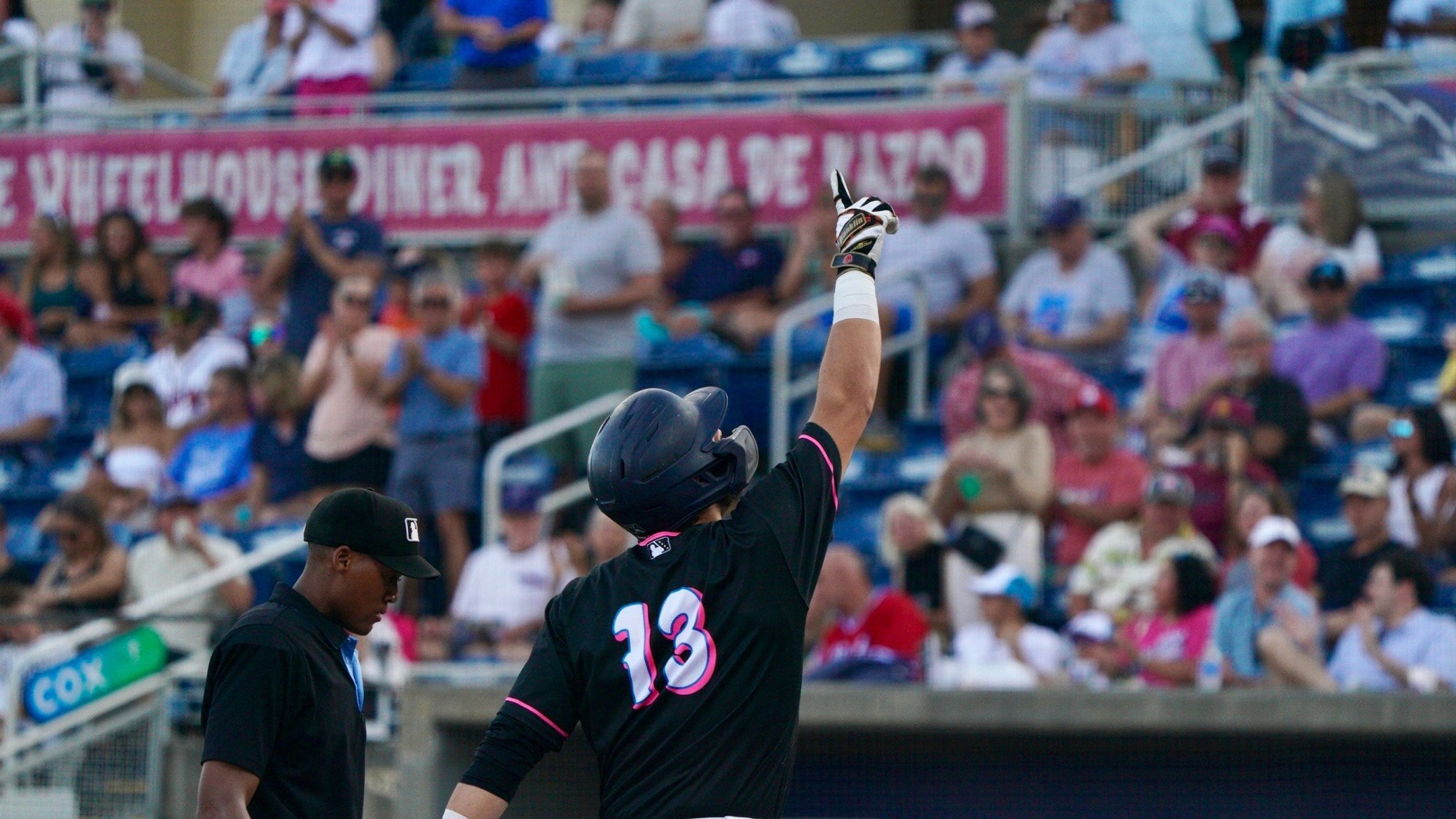 The teams combined for 27 hits, three homers, two triples, 10 doubles and included a ball hit by the Blue Wahoos’ Jake Thompson that appeared a home run, but was ruled a triple by the umpires on fan interference.