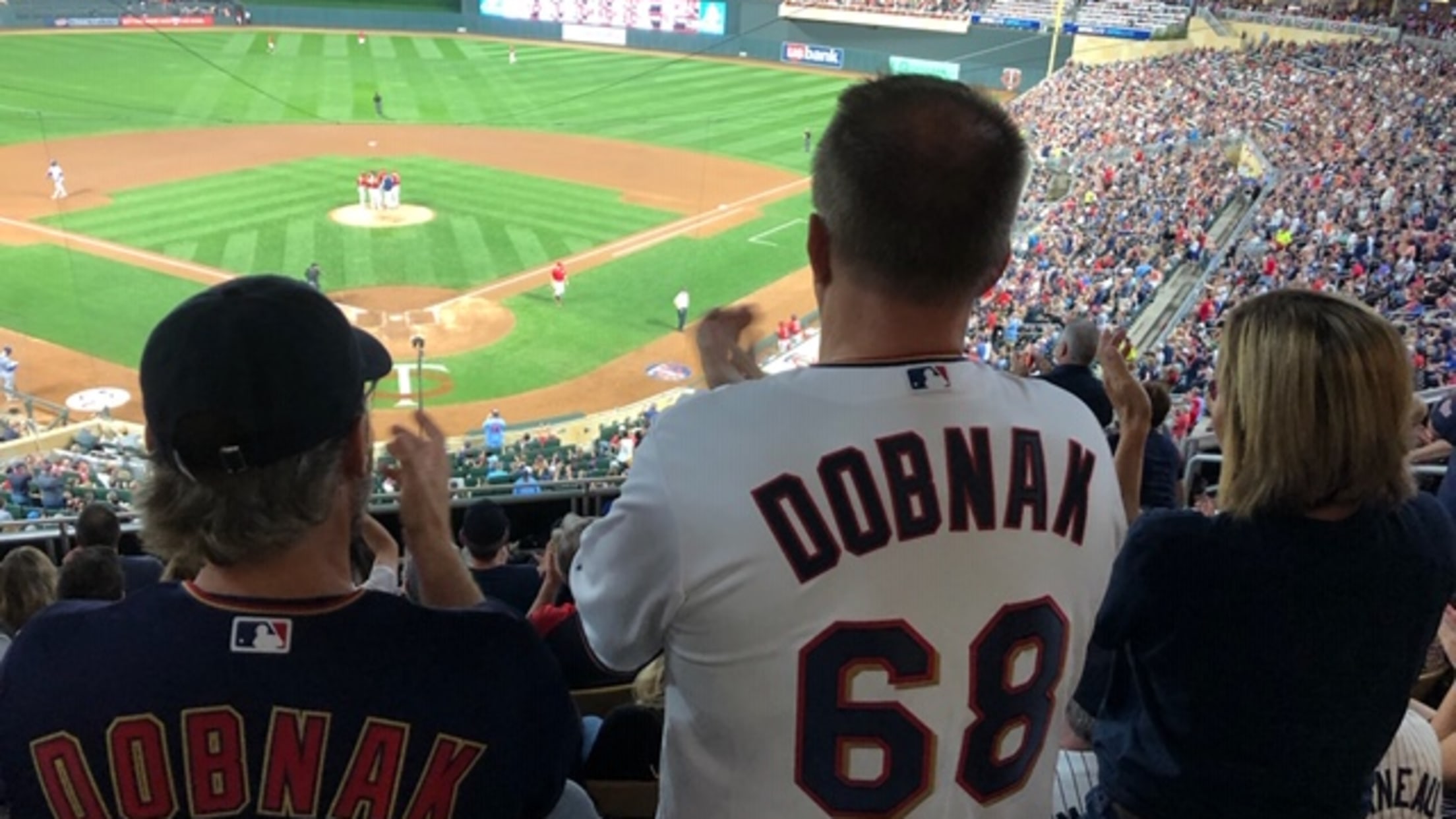 They all met afterward, hugged and Dobnak signed specialty-made, No. 68 jerseys bought that night at the Twins store at Target Field.