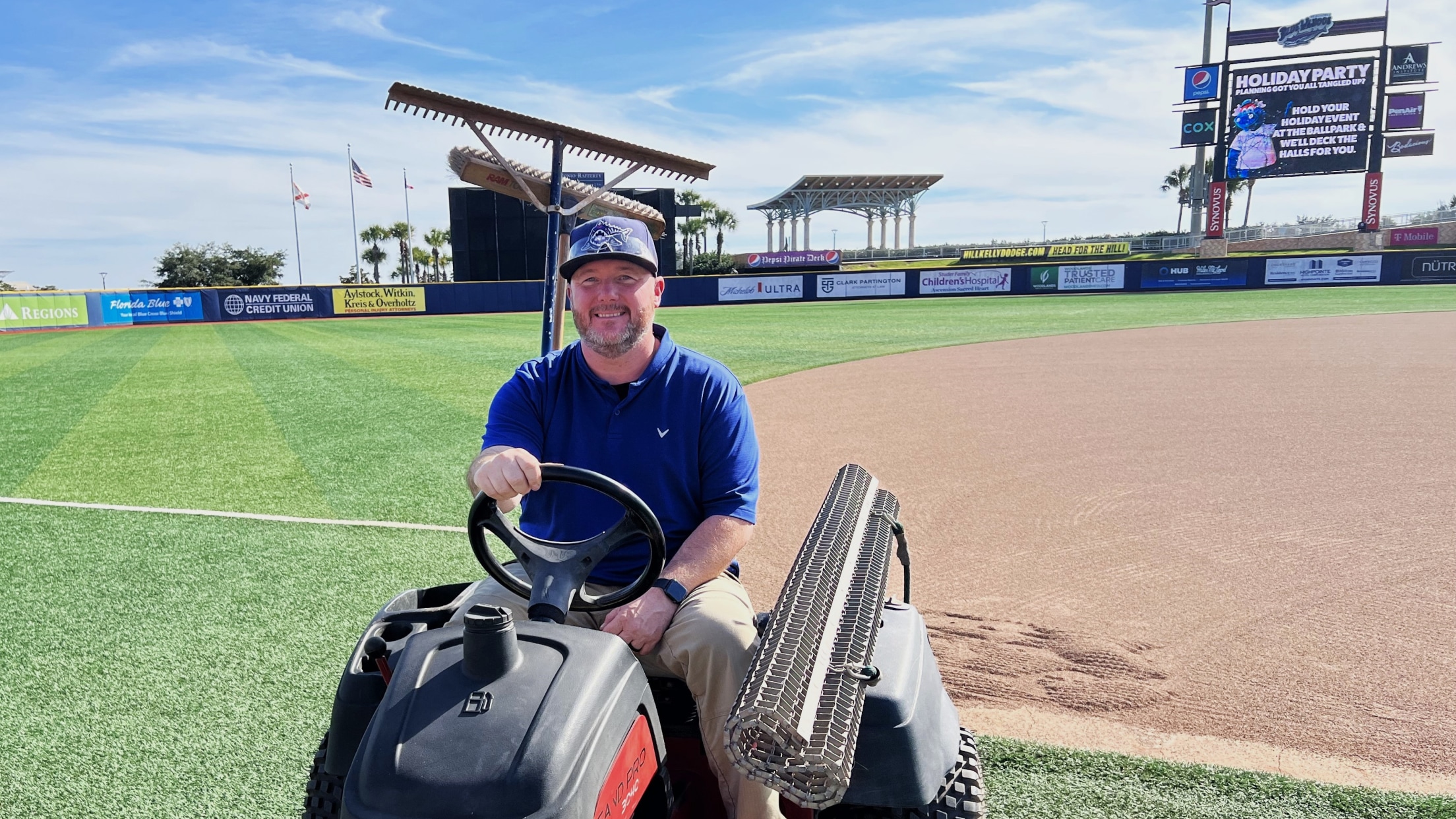 Maintaining Blue Wahoos Stadium was Atkins’ first at a ballpark using artificial turf and a dirt infield. It was also his first time experiencing Pensacola’s summer weather and frequent threats of thunderstorms.