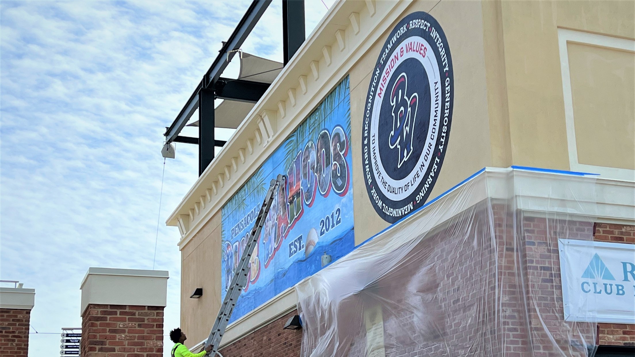 The inside of Blue Wahoos Stadium isn’t the only area undergoing a makeover. As the calendar turned from February to March this week, the façade outside the stadium was pressure-washed, then repainted to give it a new look. It was the first time since the the entire outside structure of