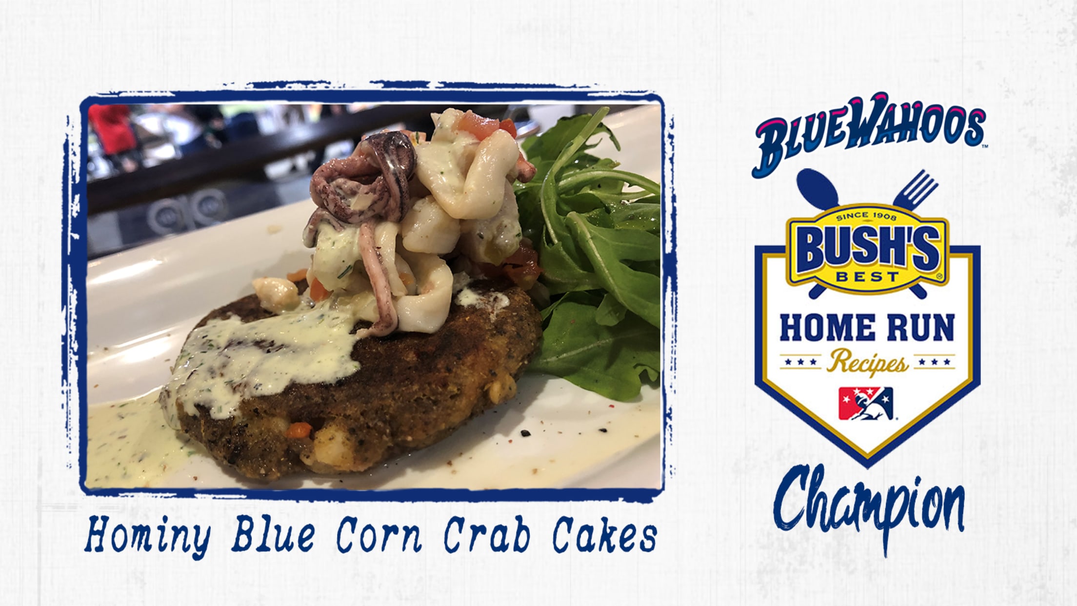 BUSH'S Baked Beans has announced Chef Travis Wilson's Hominy Blue Corn Crab Cakes as the national champion of their 2019 Home Run Recipe Contest, adding another accolade on to a busy week of honors for Blue Wahoos Concessions.The annual BUSH'S Home Run Recipe Contest invites entries from Minor League Baseball