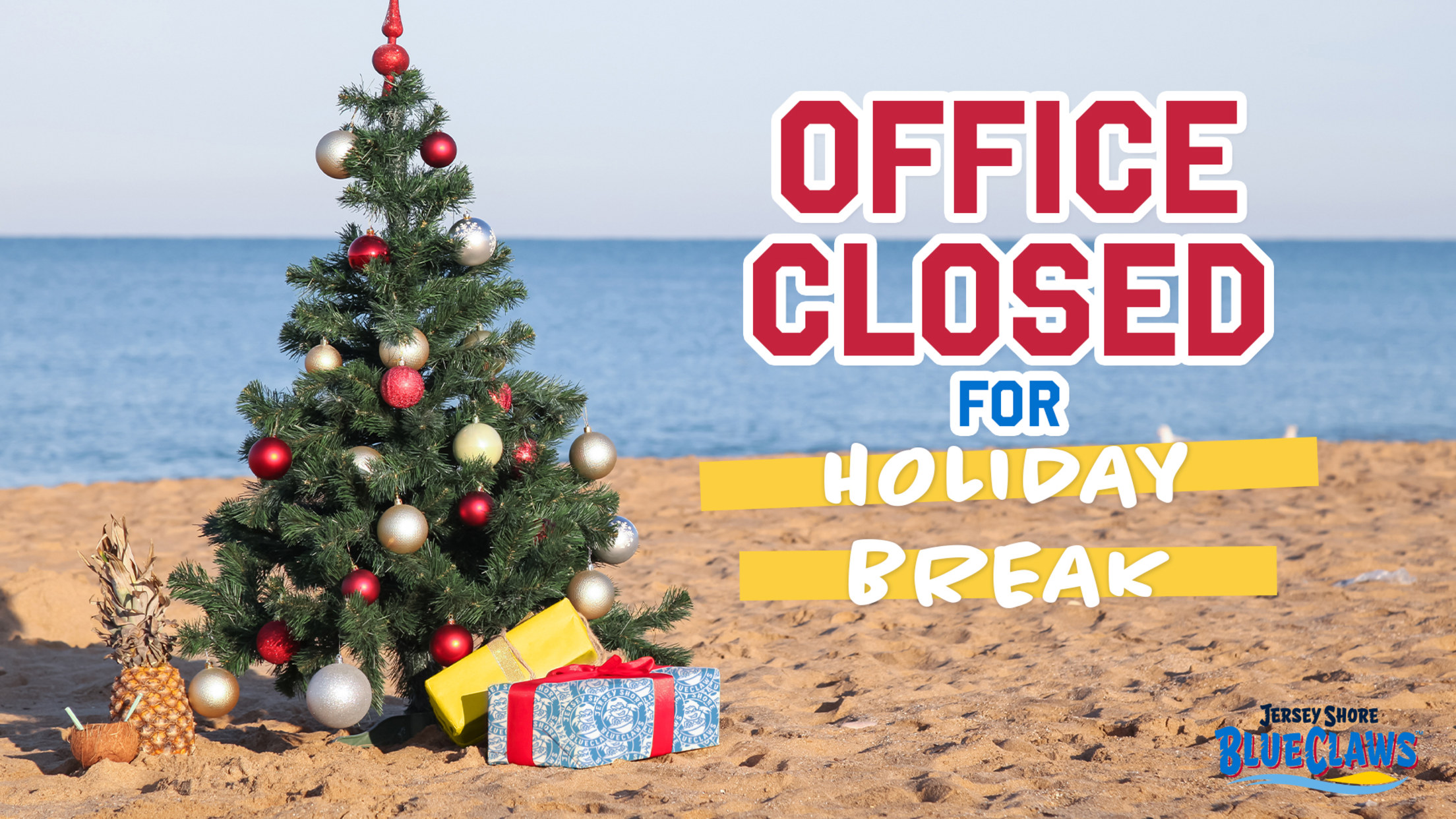 JERSEY SHORE, NJ - From everyone with the BlueClaws, we hope you have a happy, healthy, and safe holiday season. Our team is home enjoying the holidays with their friends and families and our offices are currently closed. We will re-open on Tuesday, January 2nd at 9:00 am.