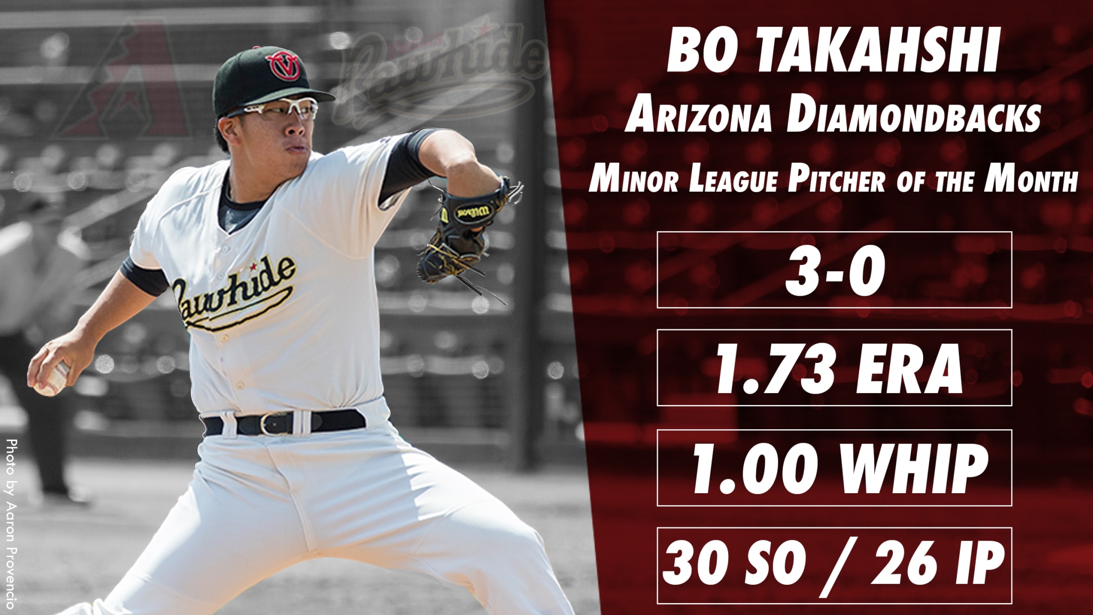 VISALIA, CA - The Visalia Rawhide, in conjunction with the Arizona Diamondbacks, announced that RHP Bo Takahashi has been named the Arizona Diamondbacks Minor League Pitcher of the Month for the month of April.