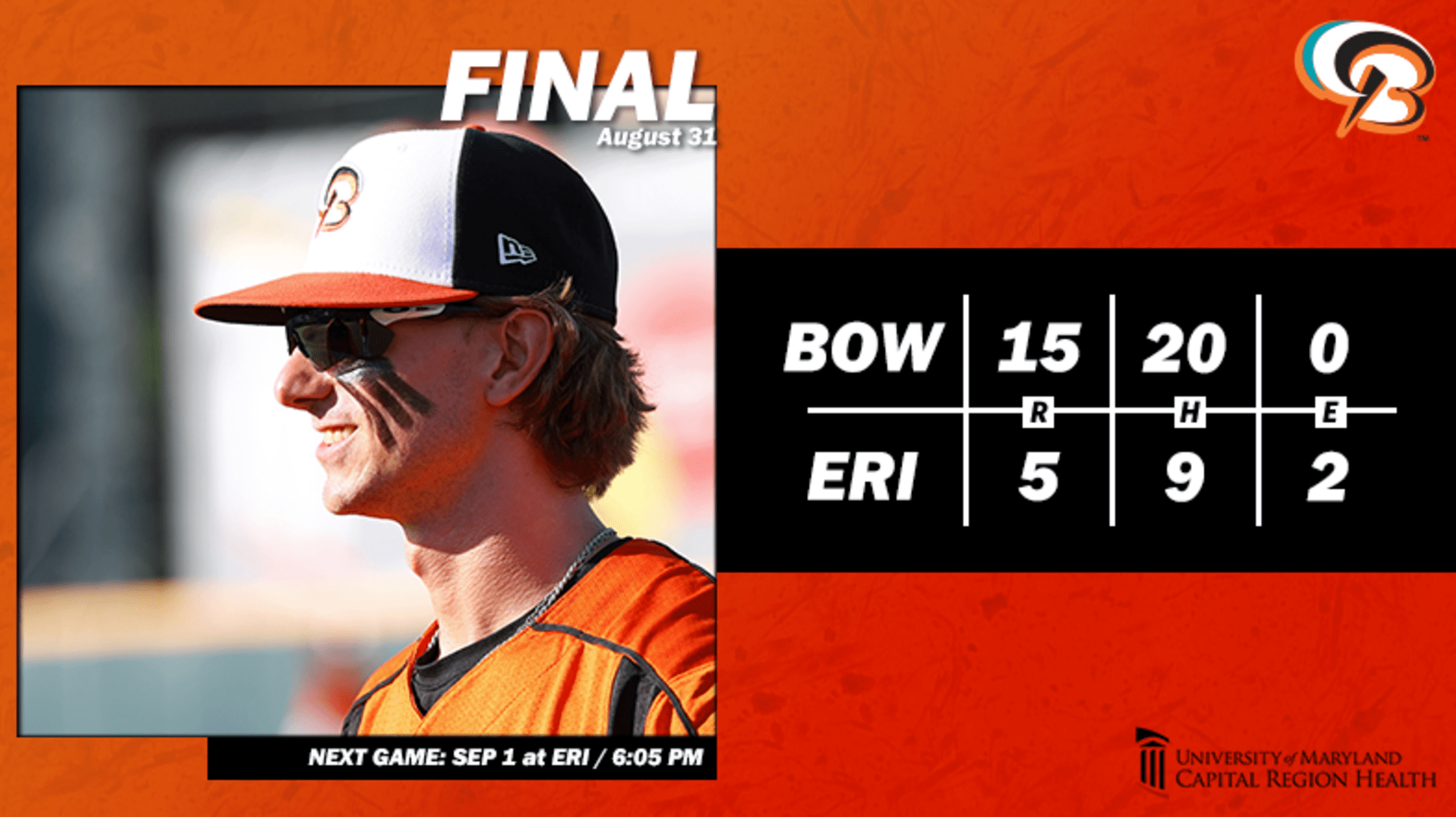 August 31 - Bowie Collects Season-High 20 Hits in Blowout of Erie